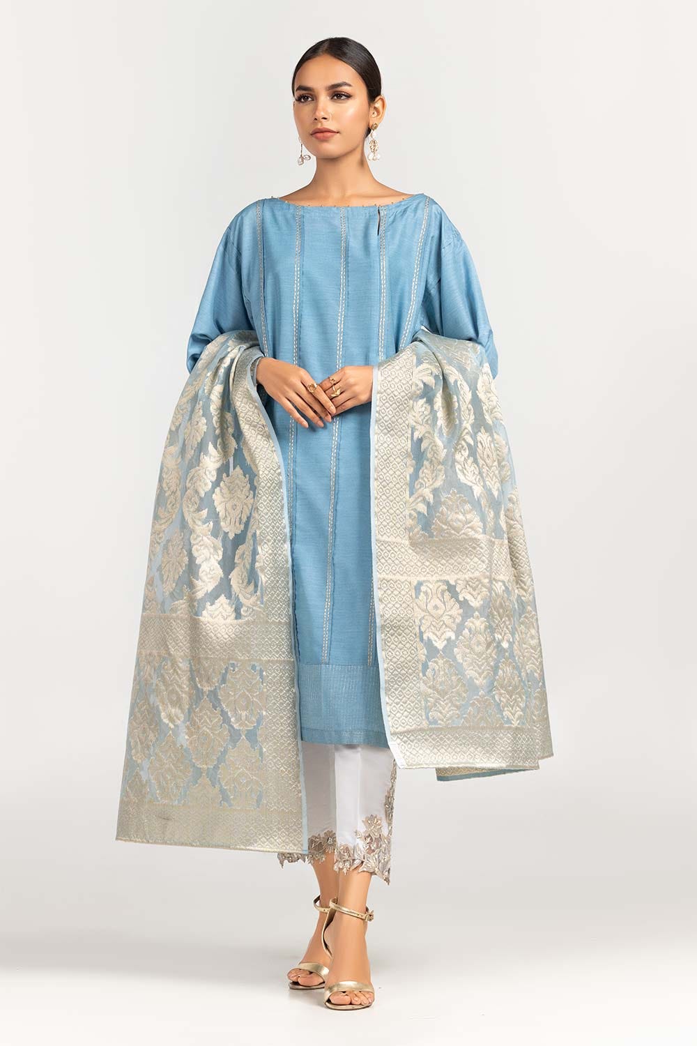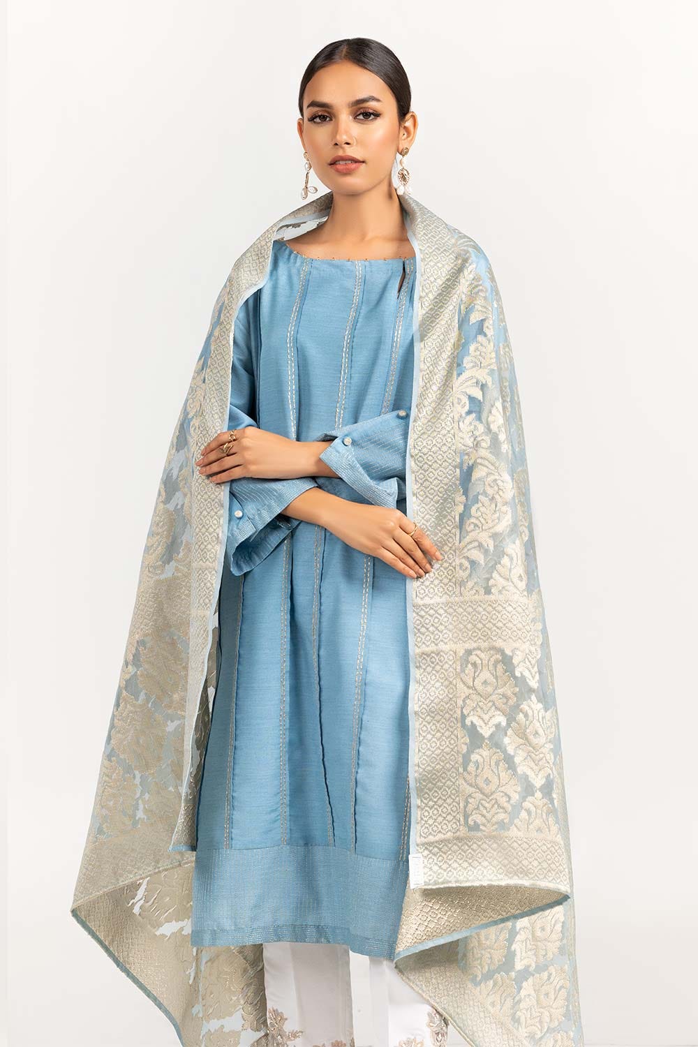 Dupatta: Delighfully gorgeous sky-blue and silver organza jamawar dupatta