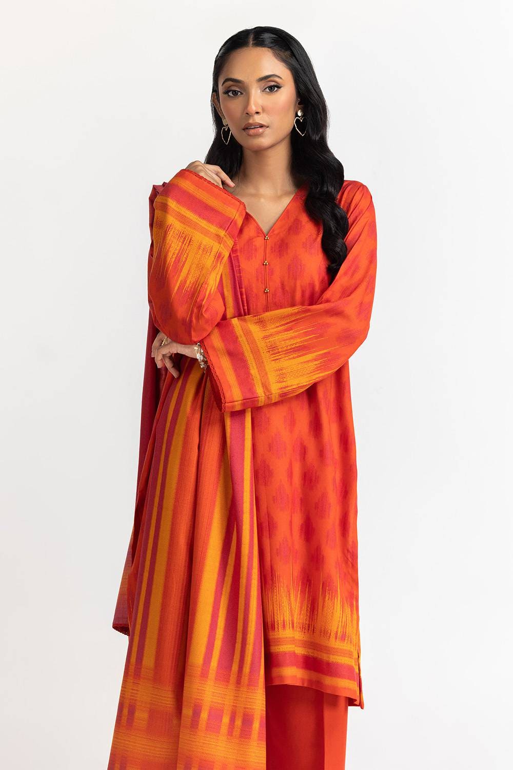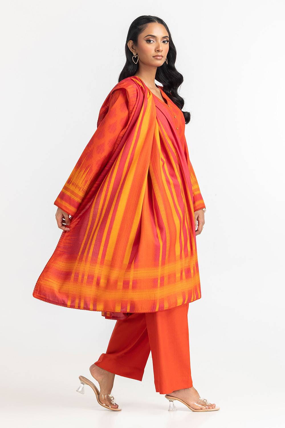 Ready to wear A vibrant 3PC orange and yellow blend, this outfit brings warmth and energy to your wardrobe. With its traditional patterns, wide leg trouser and comfortable fabric, it’s perfect for a bold, standout look.