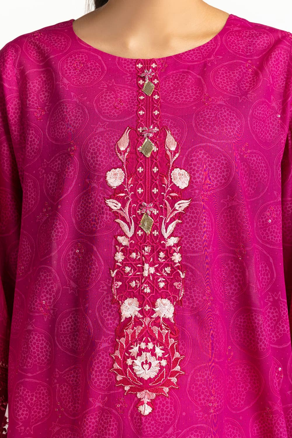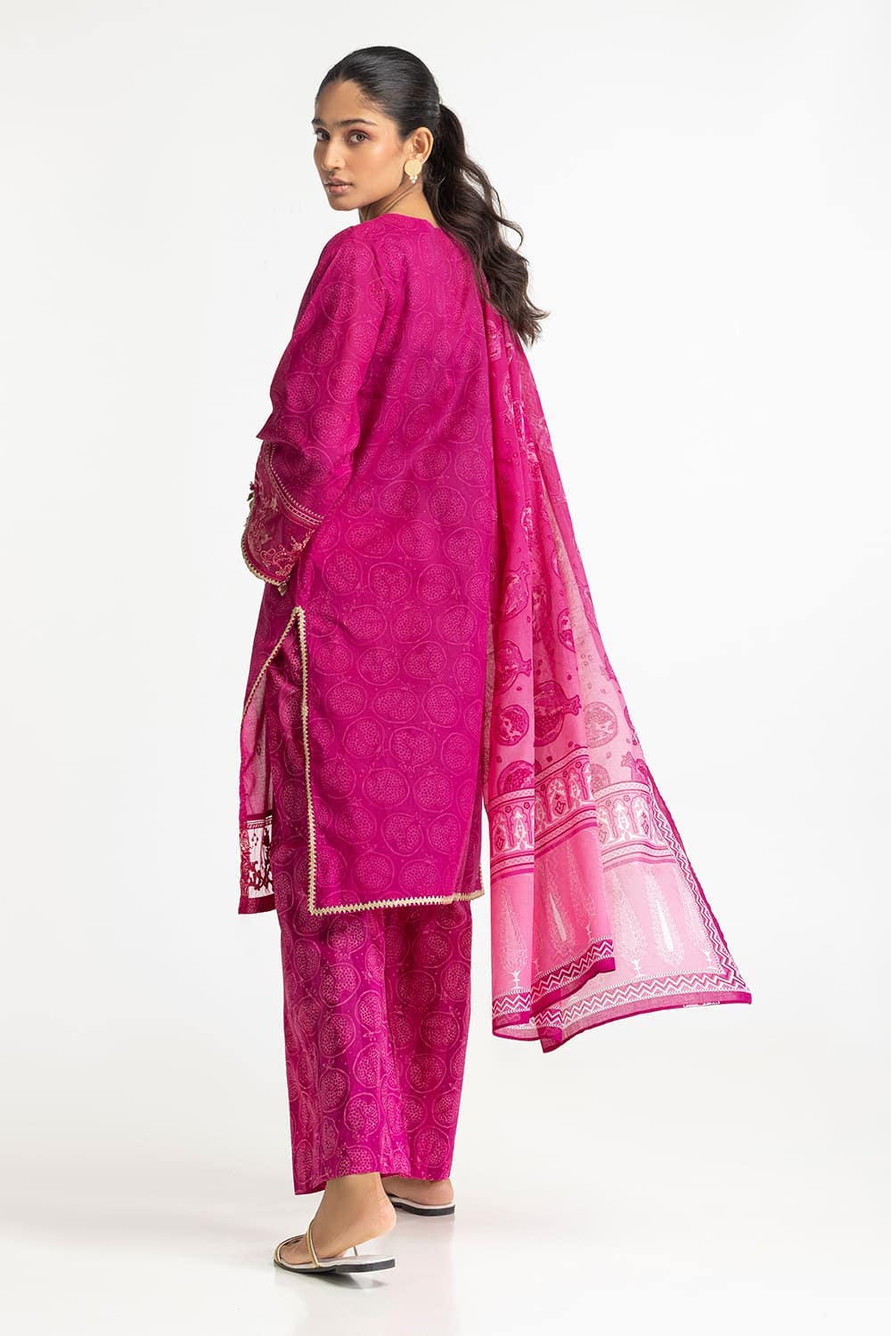 Ready to wear Radiate confidence in this vibrant magenta lawn 3PC suit featuring intricate embroidery and elegant border work, paired with matching trousers and a dupatta for a striking ensemble.