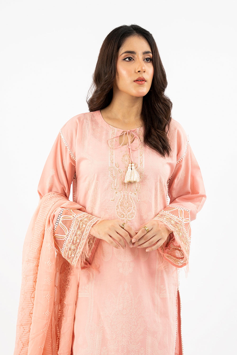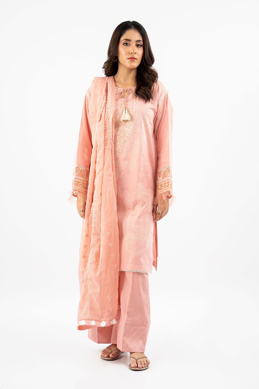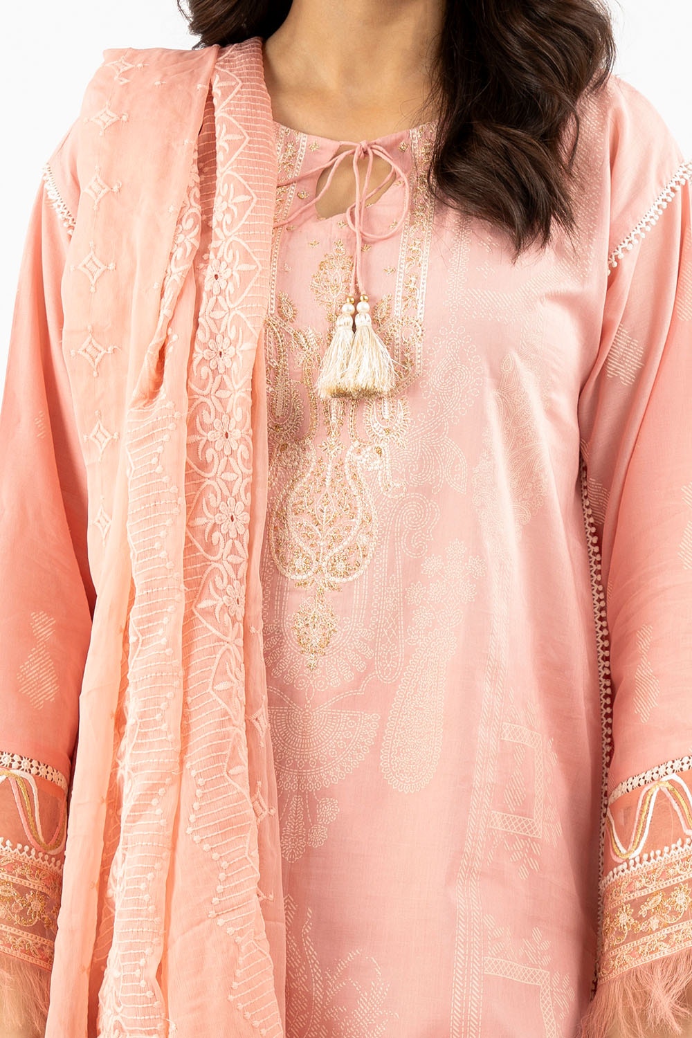 3 Piece Unstitched Embroidered Lacquer Printed Suit with Embroidered Chiffon Dupatta CLF-42041