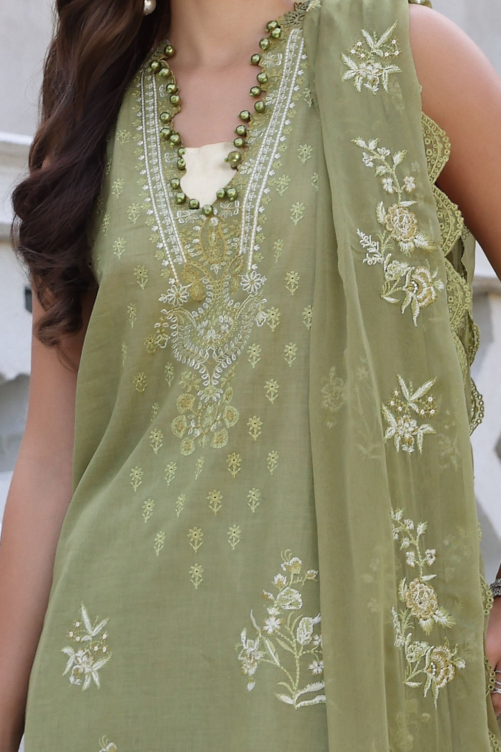 • Embroidered Lawn Shirt Front & Sleeves with Embroidered Border for Front. Dyed Lawn Back - 2.28 Meters