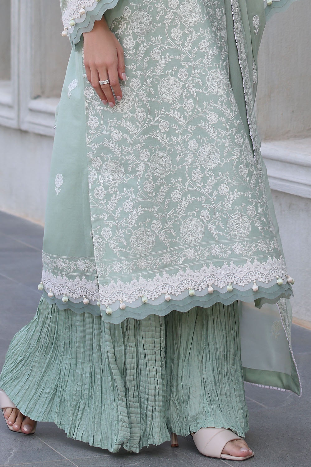 • Embroidered Lawn Shirt Front, Back & Sleeves with Embroidered Neckline on Organza - 2.3 Meters