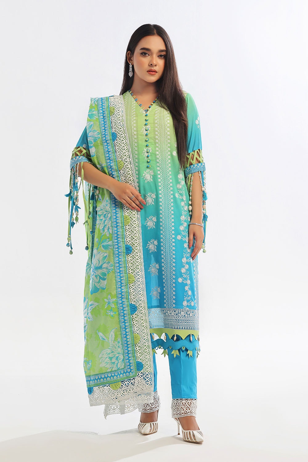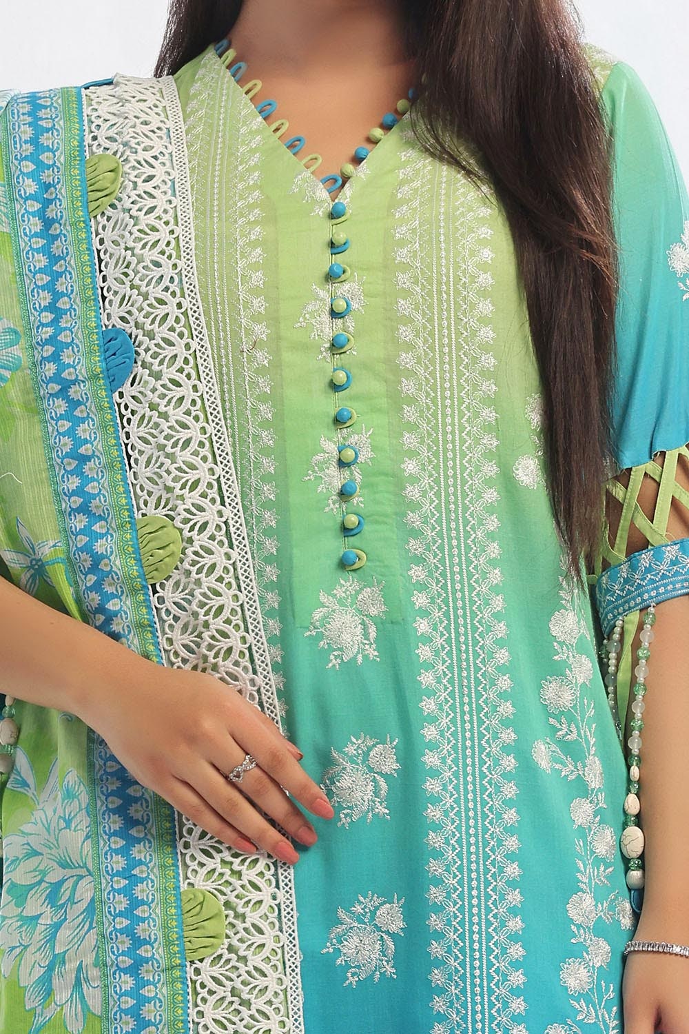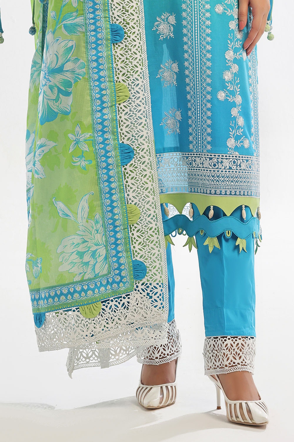 3 Piece Unstitched Embroidered Lawn Suit with Printed Denting Lawn Dupatta DN-42044
