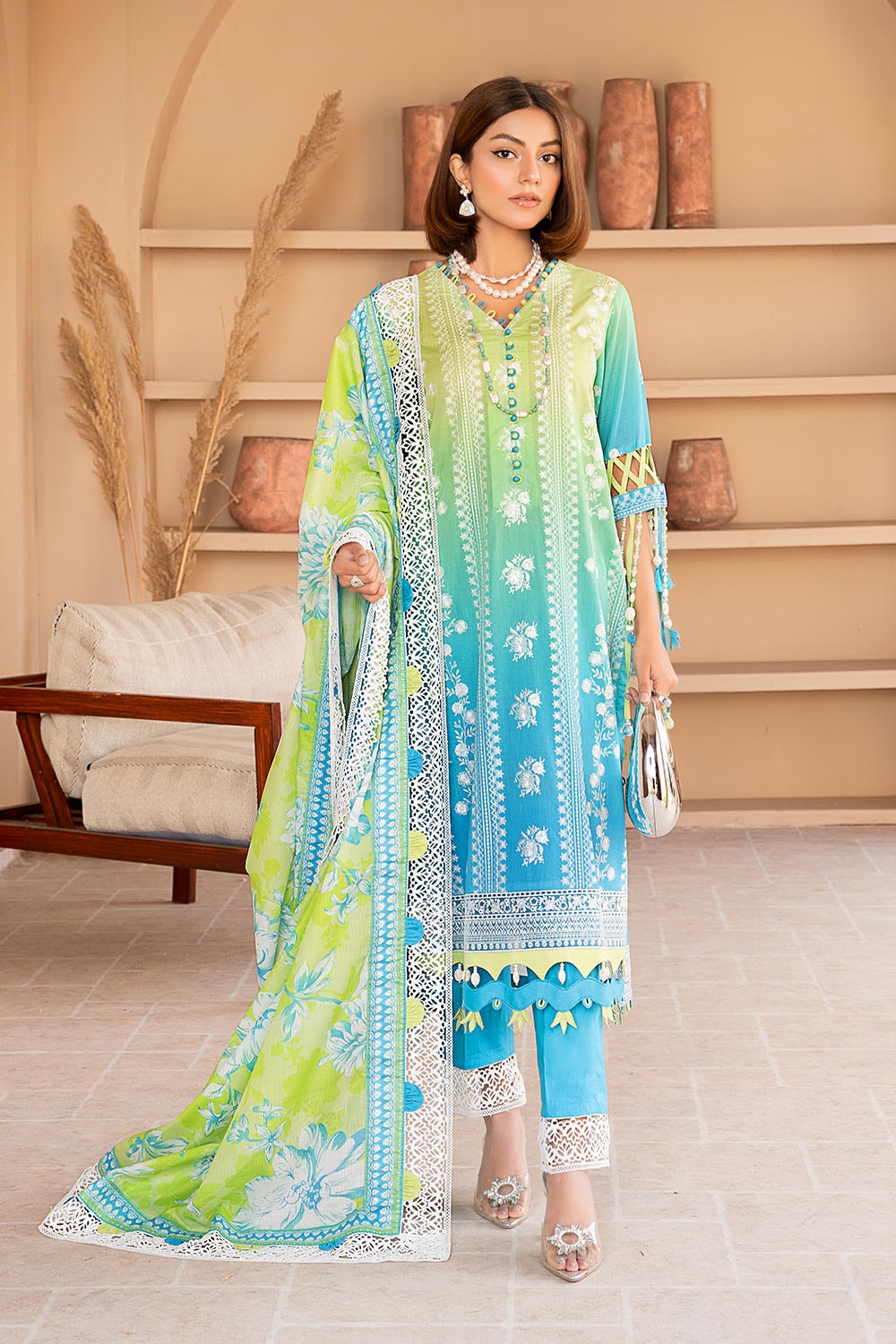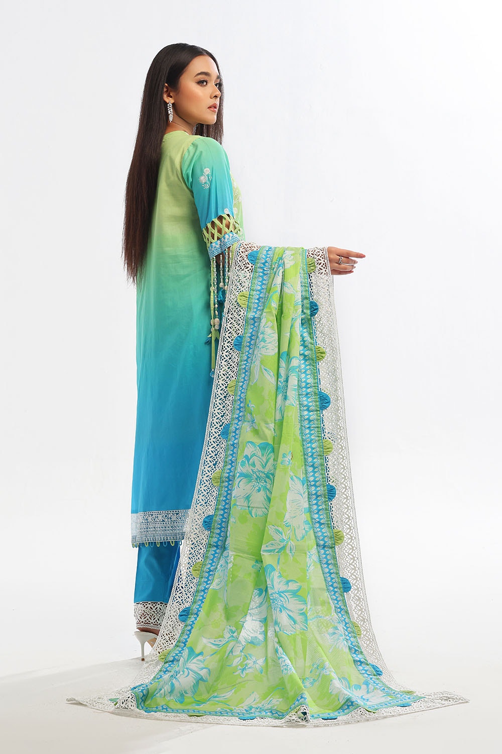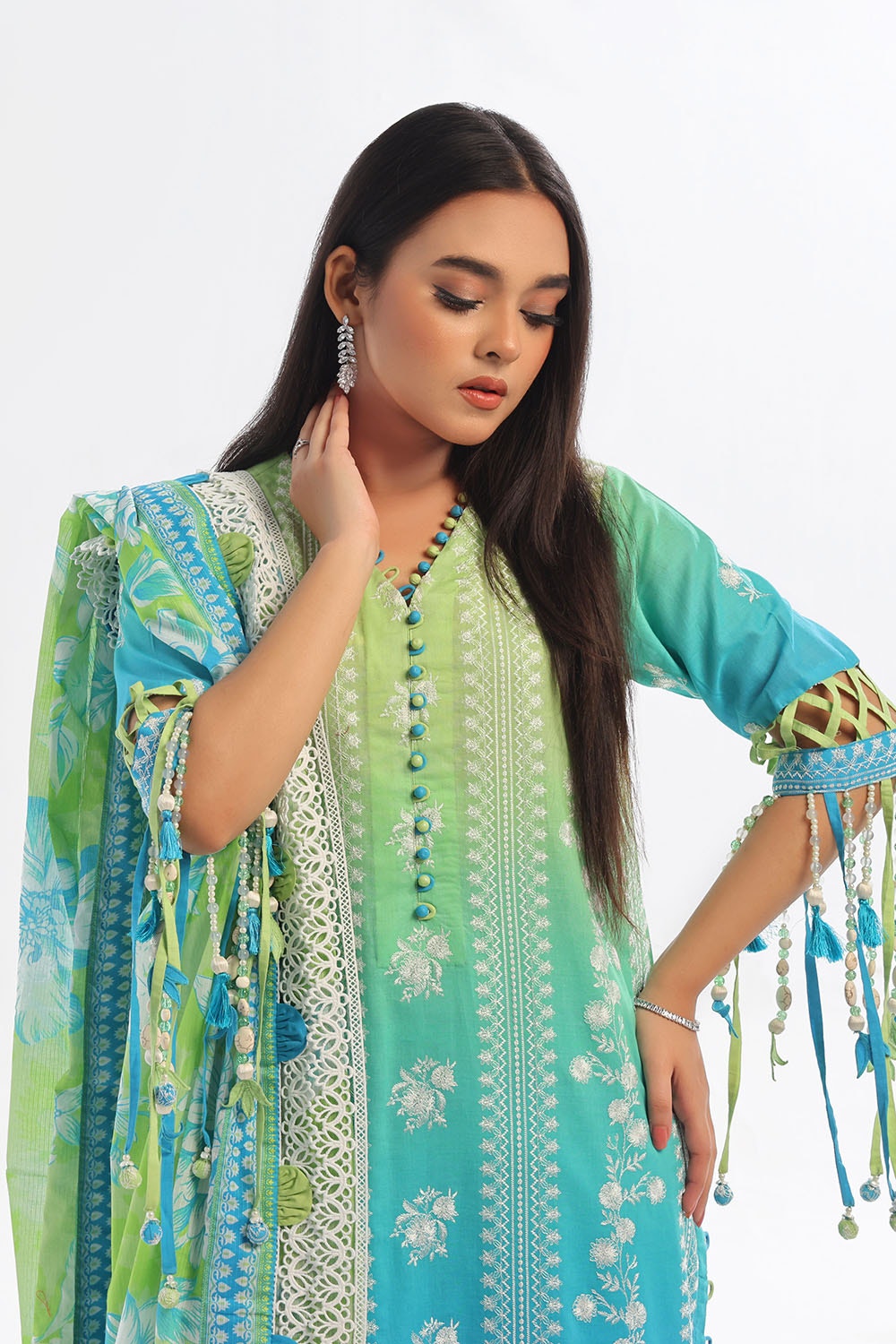 3 Piece Unstitched Embroidered Lawn Suit with Printed Denting Lawn Dupatta DN-42044