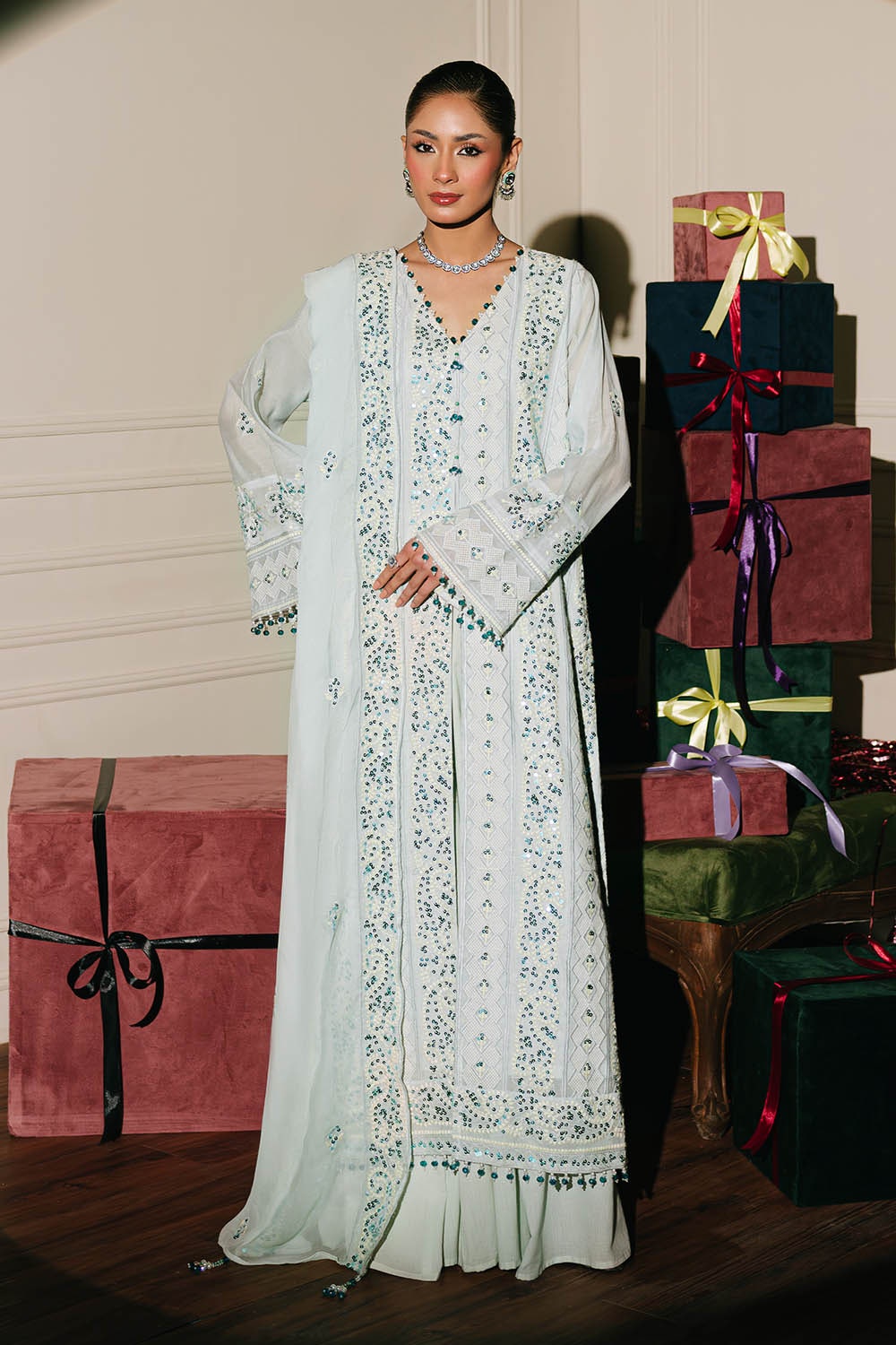 3 Piece Unstitched Embroidered Paper Cotton Suit with Embroidered Chiffon Dupatta FE-52153