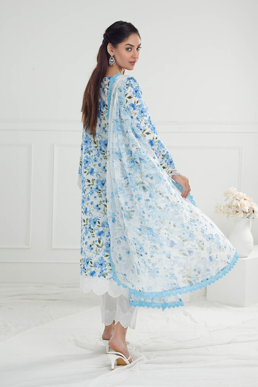 • Embroidered Printed Lawn Shirt Front & Sleeves with Printed Lawn Back - 2.28 Meters