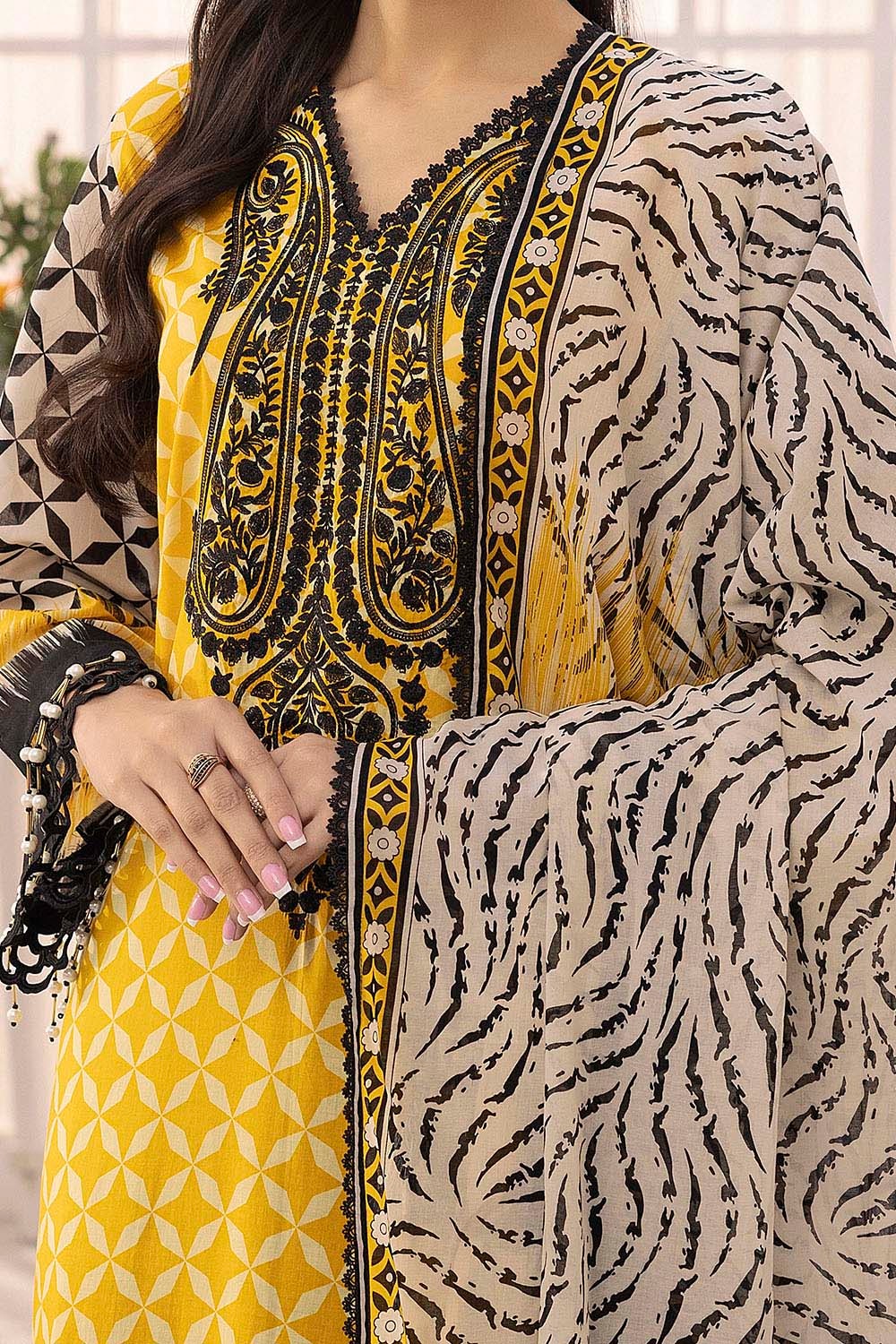 • Embroidered Printed Lawn Shirt Front with Printed Lawn Back & Sleeves - 1.75 Meters