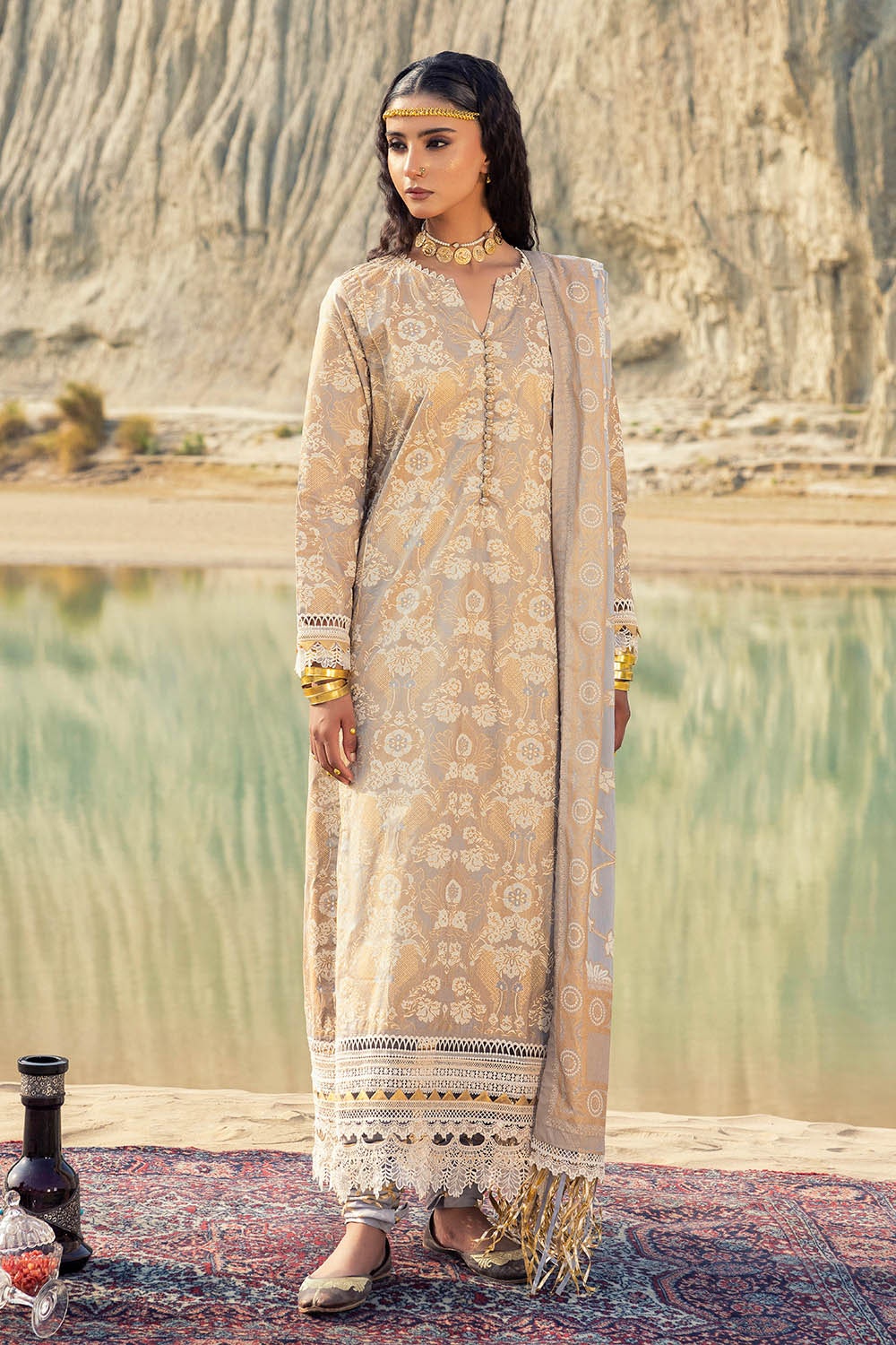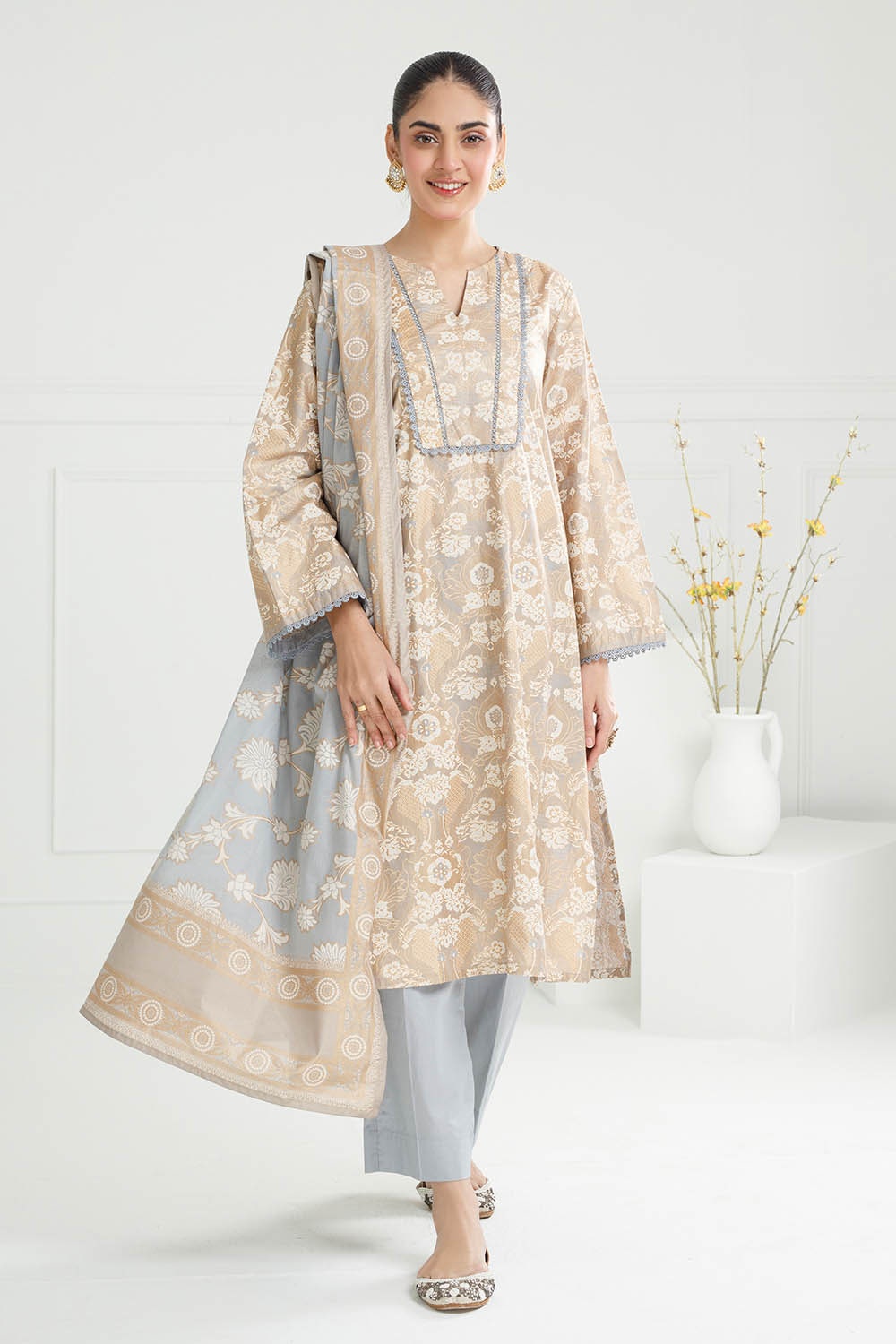 3 Piece Unstitched Gold and Lacquer Printed Lawn Suit CL-52358-A