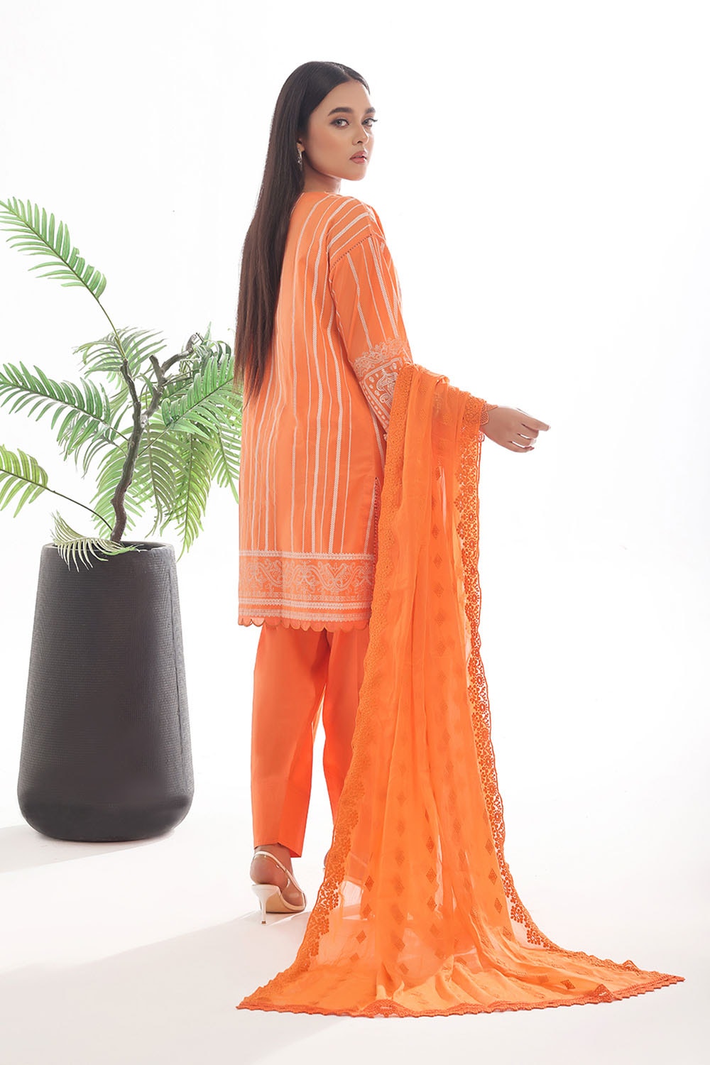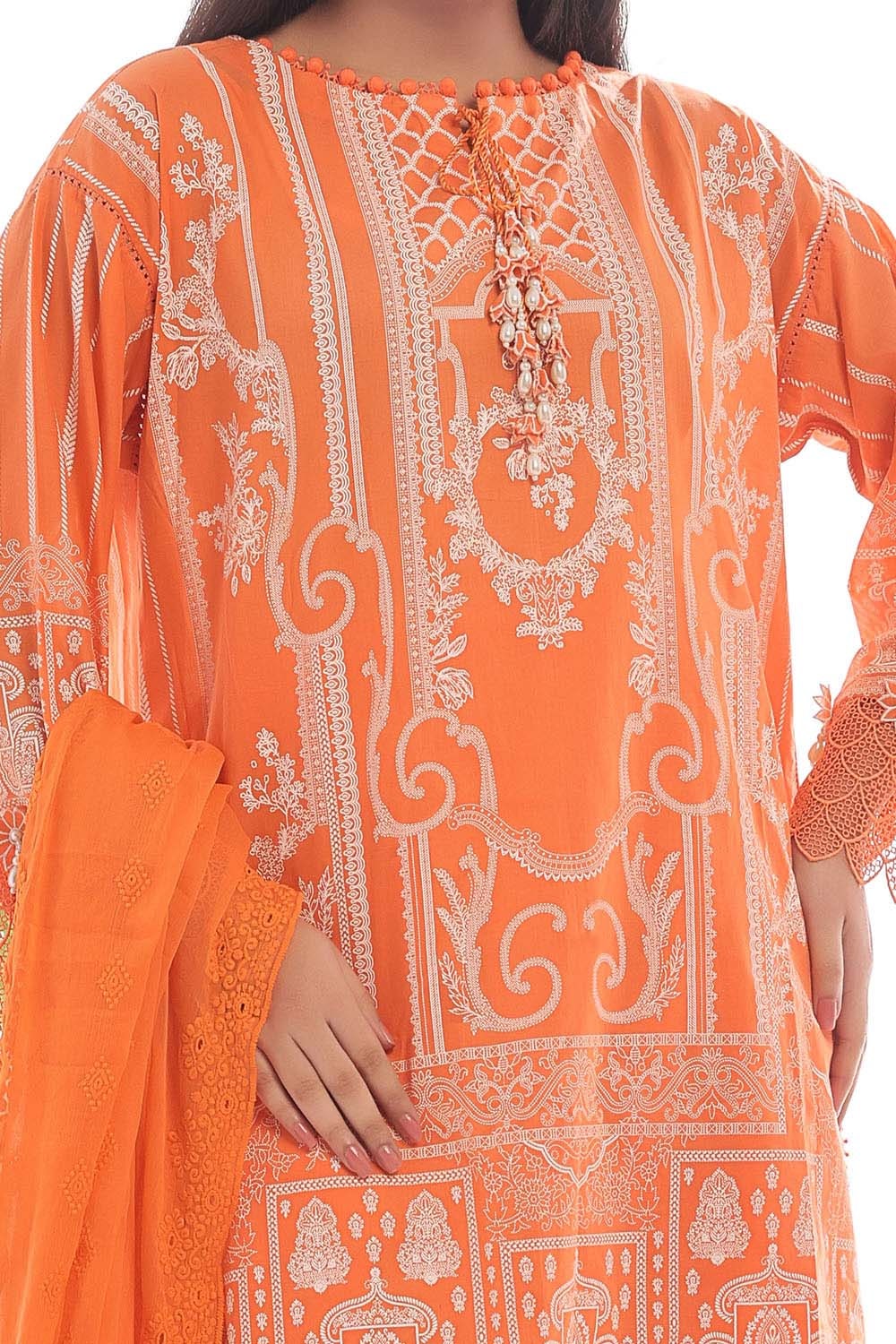 3 Piece Unstitched Lacquer Printed Suit with Embroidered Chiffon Dupatta CLF-42042