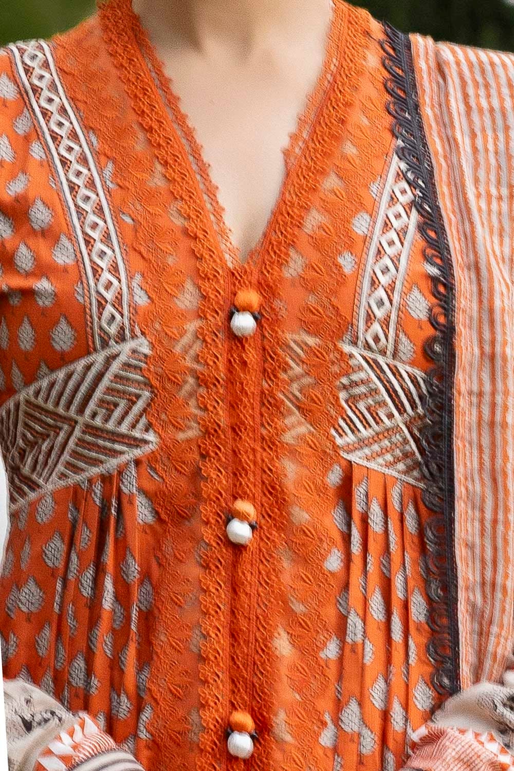 • Printed Khaddar Shirt with Embroidered Neckline on Organza - 1.75 Meters