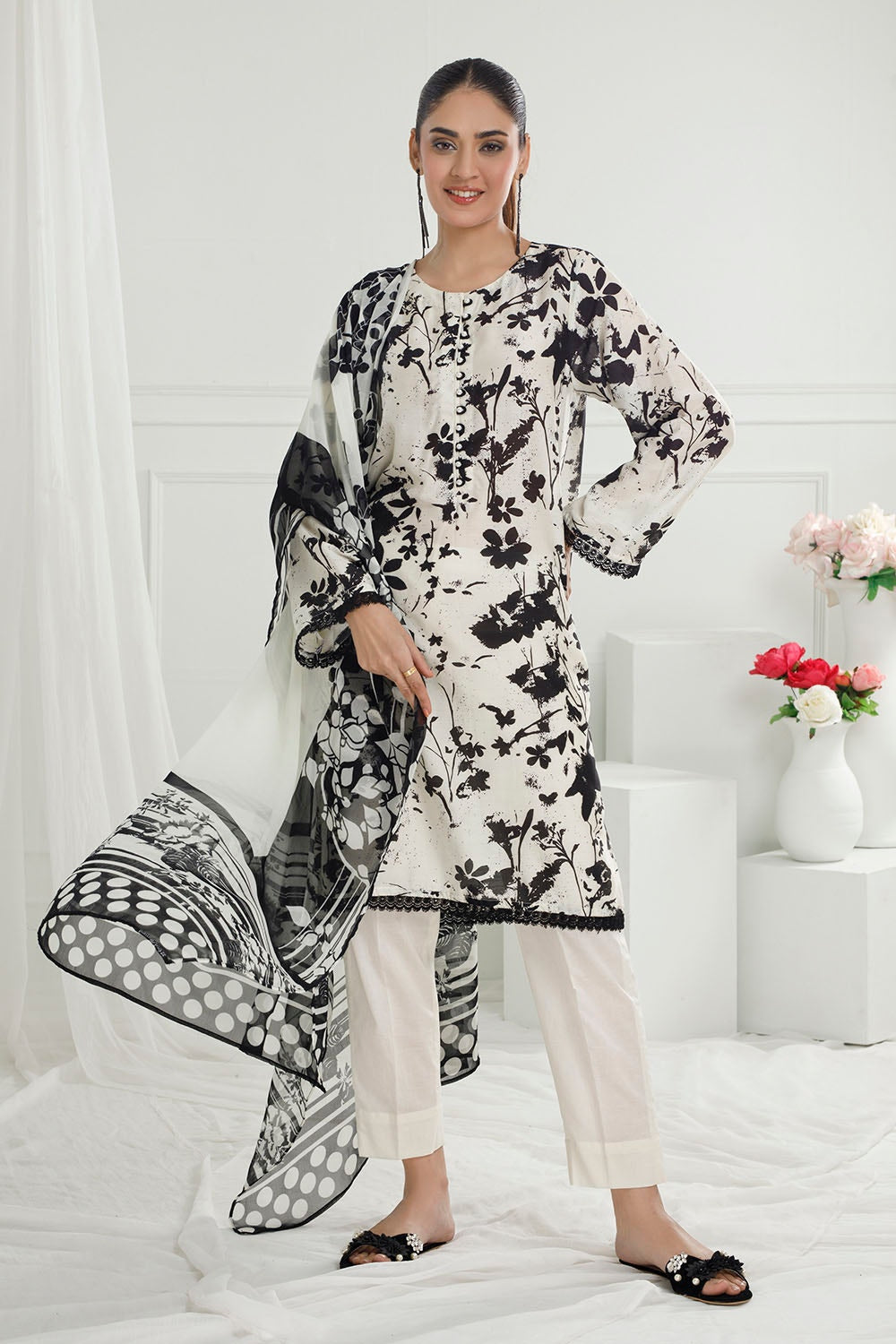 3 Piece Unstitched Printed Pure Bamboo Silk Suit with Printed Chiffon Dupatta BS-52001