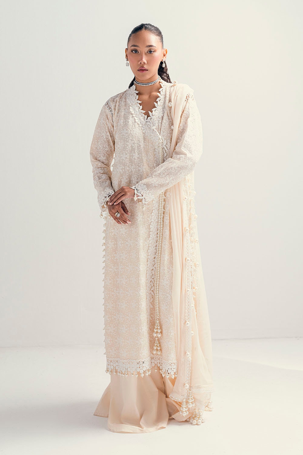 3 Piece Unstitched Schiffli Embroidered Lawn Suit with  Embroidered Chiffon Dupatta PM-52046