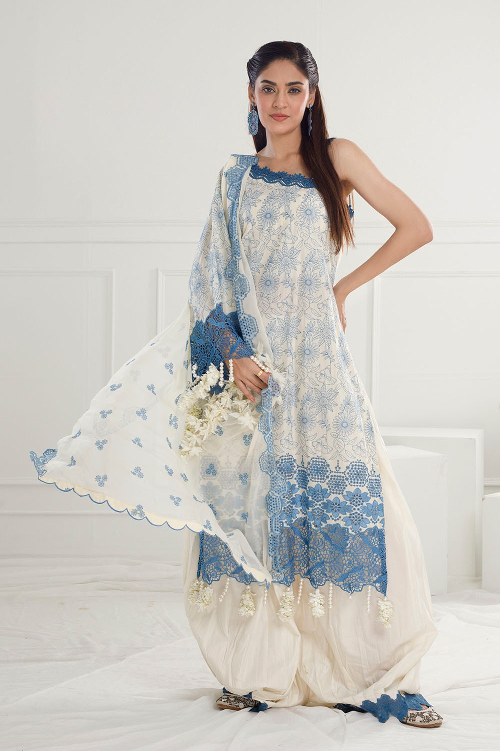 3 Piece Unstitched Schiffli Embroidered Lawn Suit with Schiffli Embroidered Chiffon Dupatta PM-52042