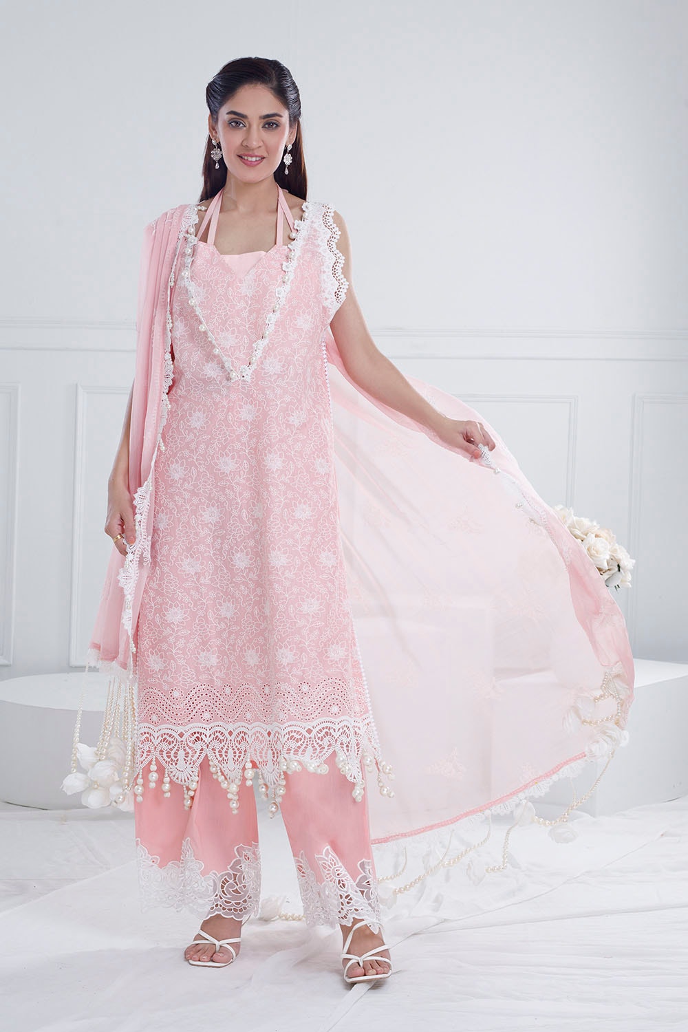 3 Piece Unstitched Schiffli Embroidered Lawn Suit with Schiffli Embroidered Chiffon Dupatta PM-52051