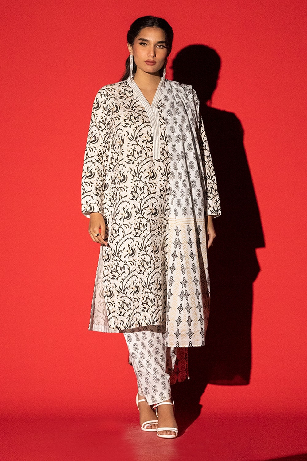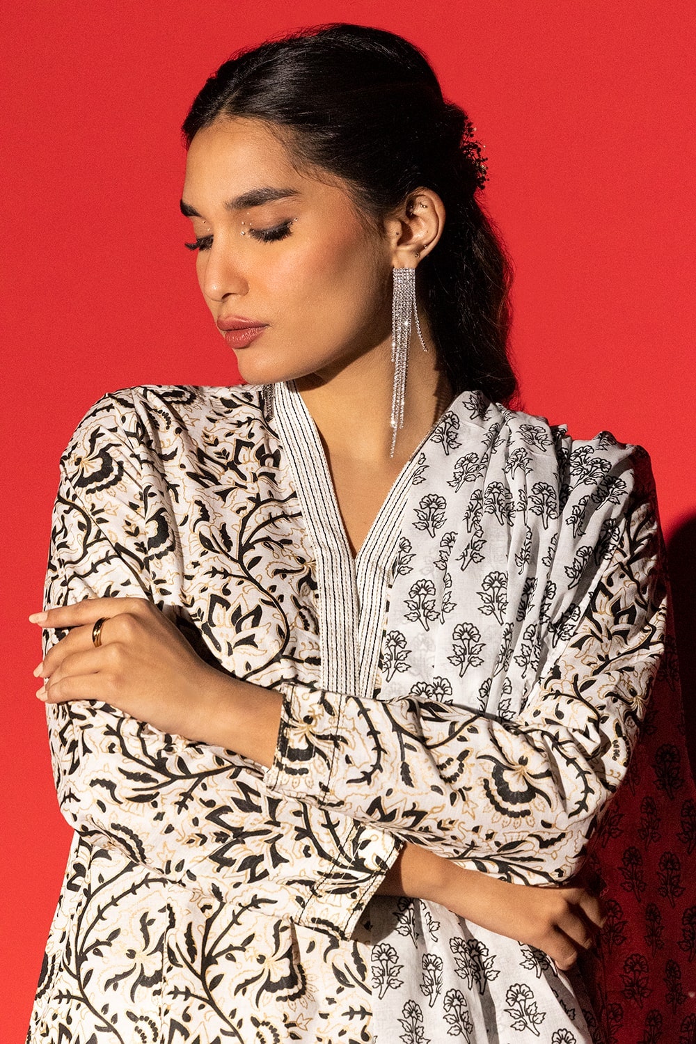 Ready to wear 3Pcs cambric block printed shirt and shalwar with block printed dupatta