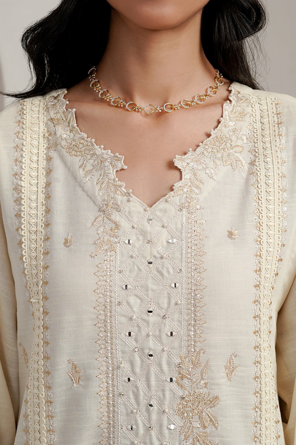 Step into understated sophistication with our 3Pc Khaddar Embroidered Suit in a serene Off-White. The khaddar shirt features delicate embroidery for a touch of refinement, while the wide-leg trousers offer a comfortable yet chic fit. The cotton silk dupatta completes the look with its smooth, solid texture. Perfect for every occasion, this suit blends timeless elegance with effortless style.
