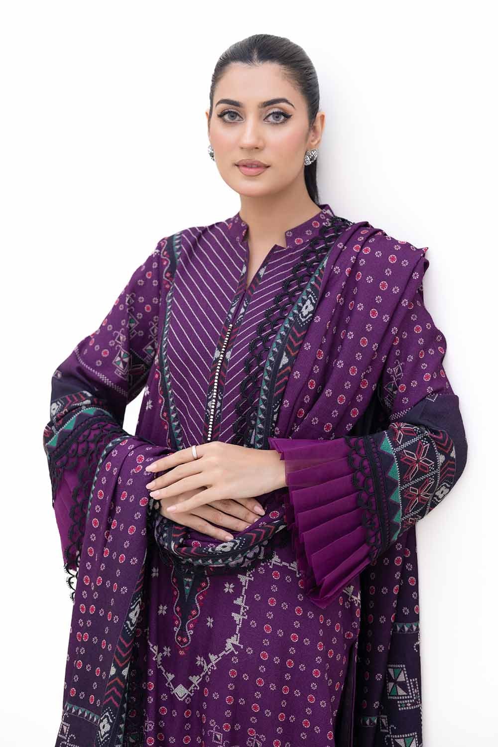 3 Piece Unstitched Printed Dhanak Suit DH-42008