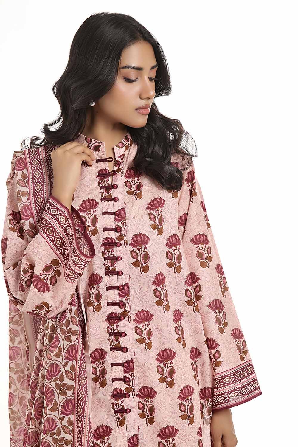 3 Piece Unstitched Printed Lawn Suit with Cotton Silk Dupatta CLF-42008