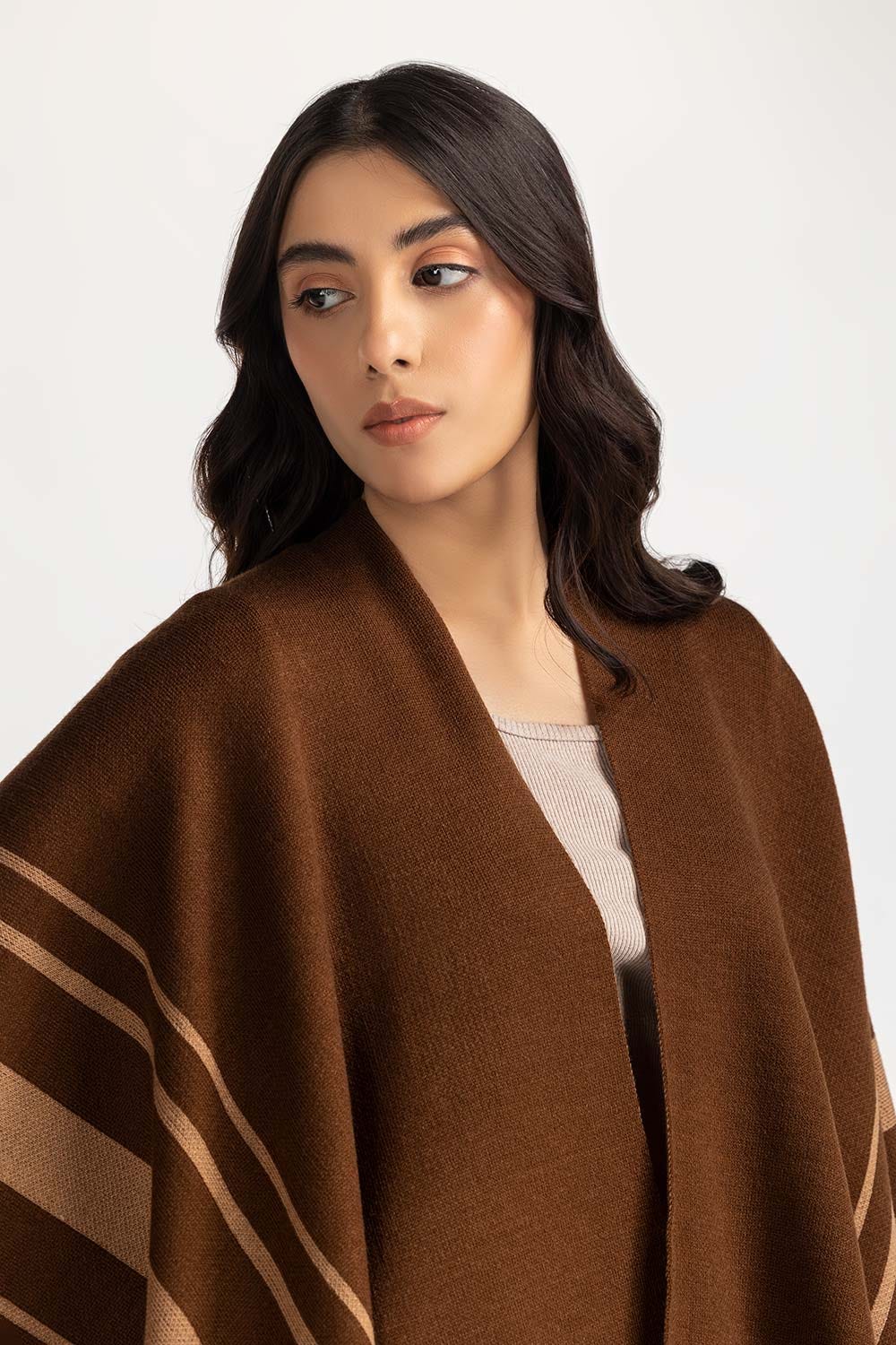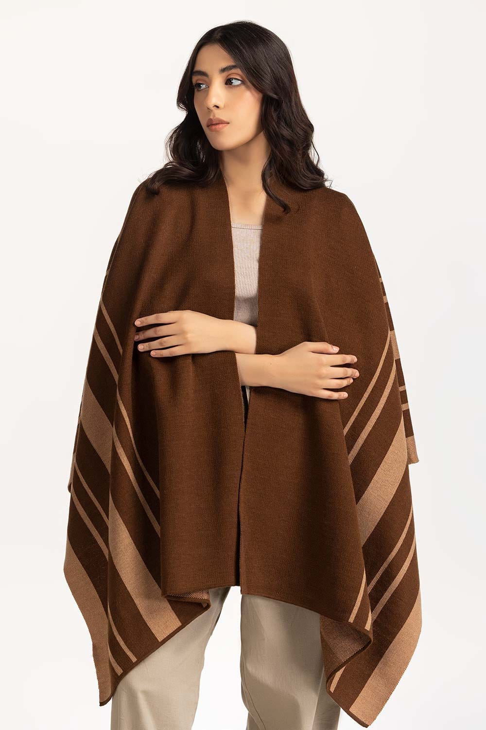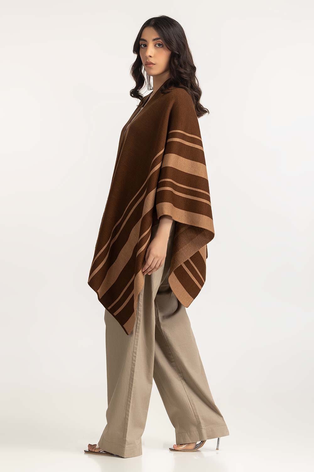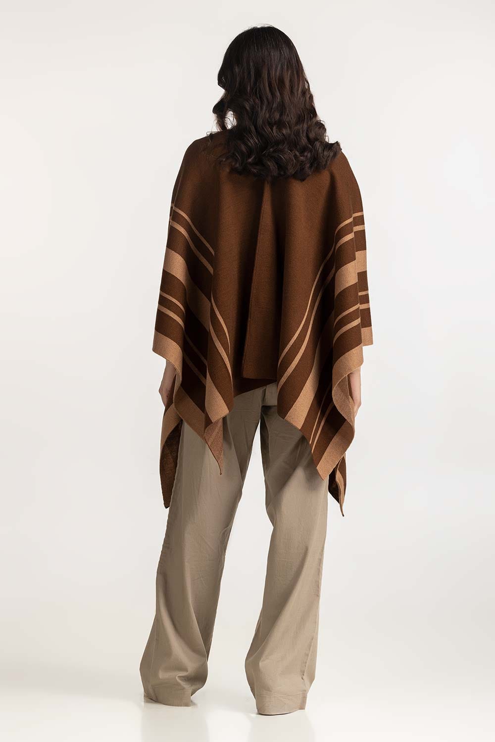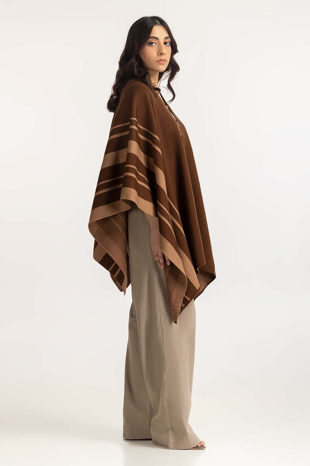 Brown Cape Shawls With Stripes At Side With Light Brown Color