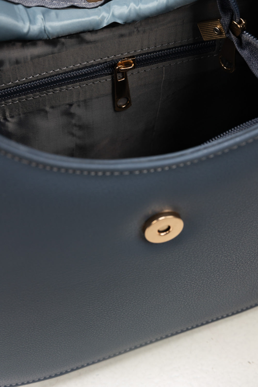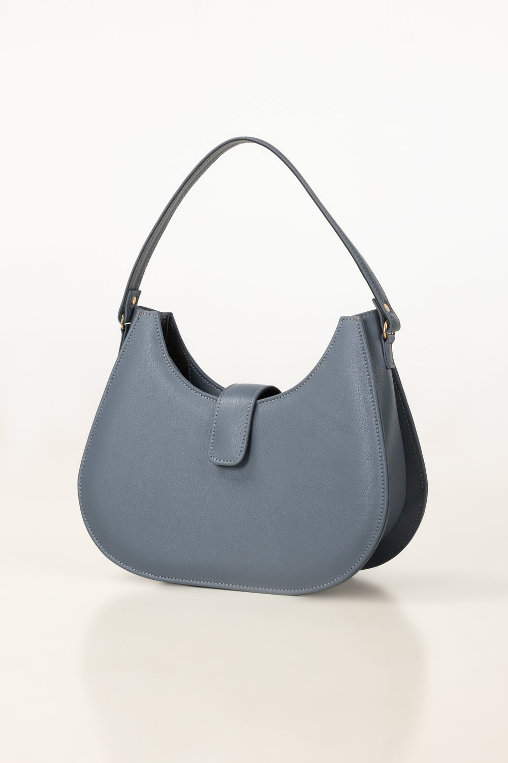 This elegant blue shoulder bag features a modern curved silhouette designed for everyday sophistication. Its structured shape offers a roomy interior while maintaining a sleek, minimalist look. A secure top flap and zipper closure and comfortable strap make it both stylish and practical for daily wear.