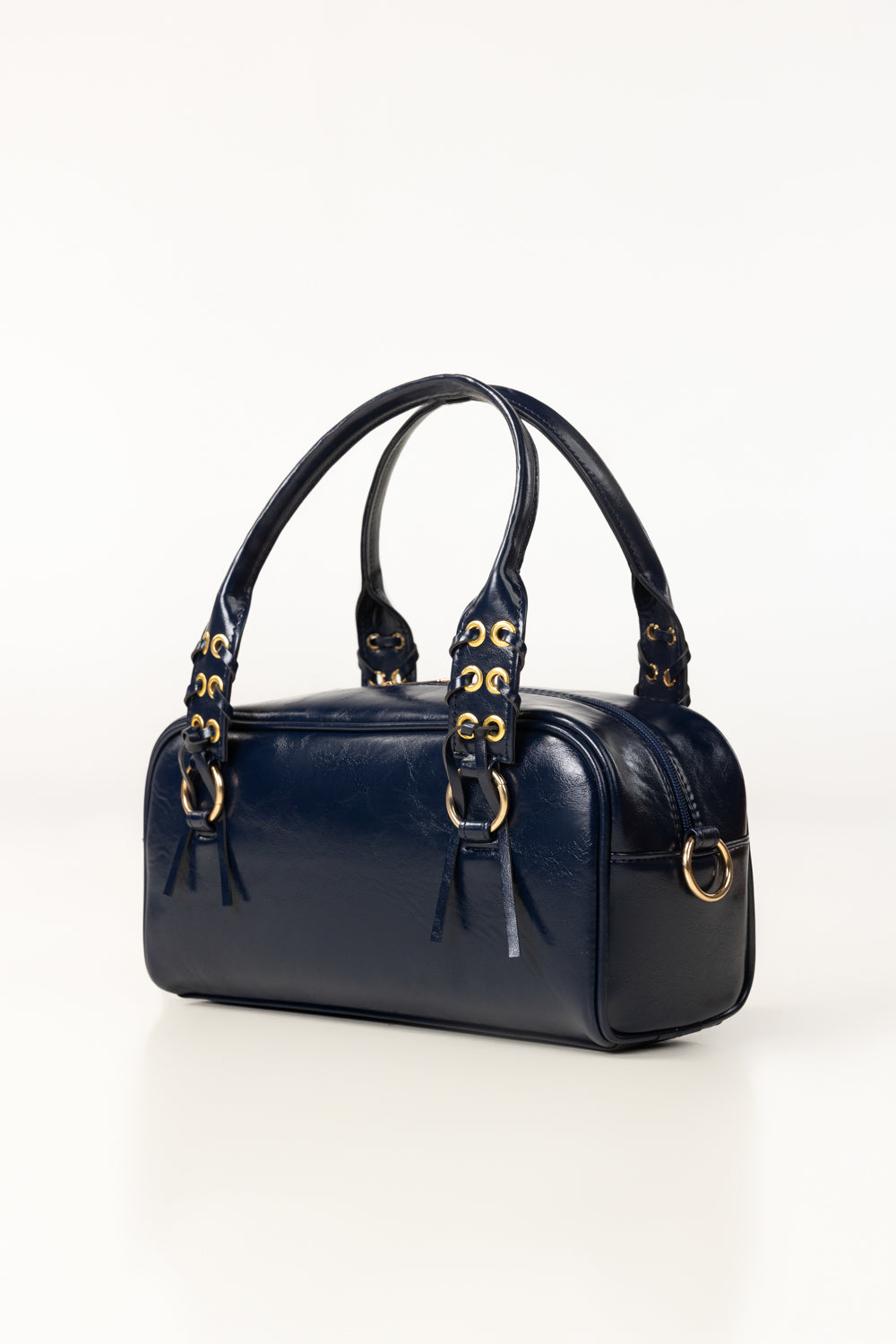 This chic structured handbag features a sleek, compact silhouette crafted in a polished finish with elegant gold-tone hardware. Designed with dual top handles and a secure zip closure, it offers just the right amount of space for your daily essentials. Perfect for day-to-night wear, it adds a refined, modern touch to both casual and dressy looks.