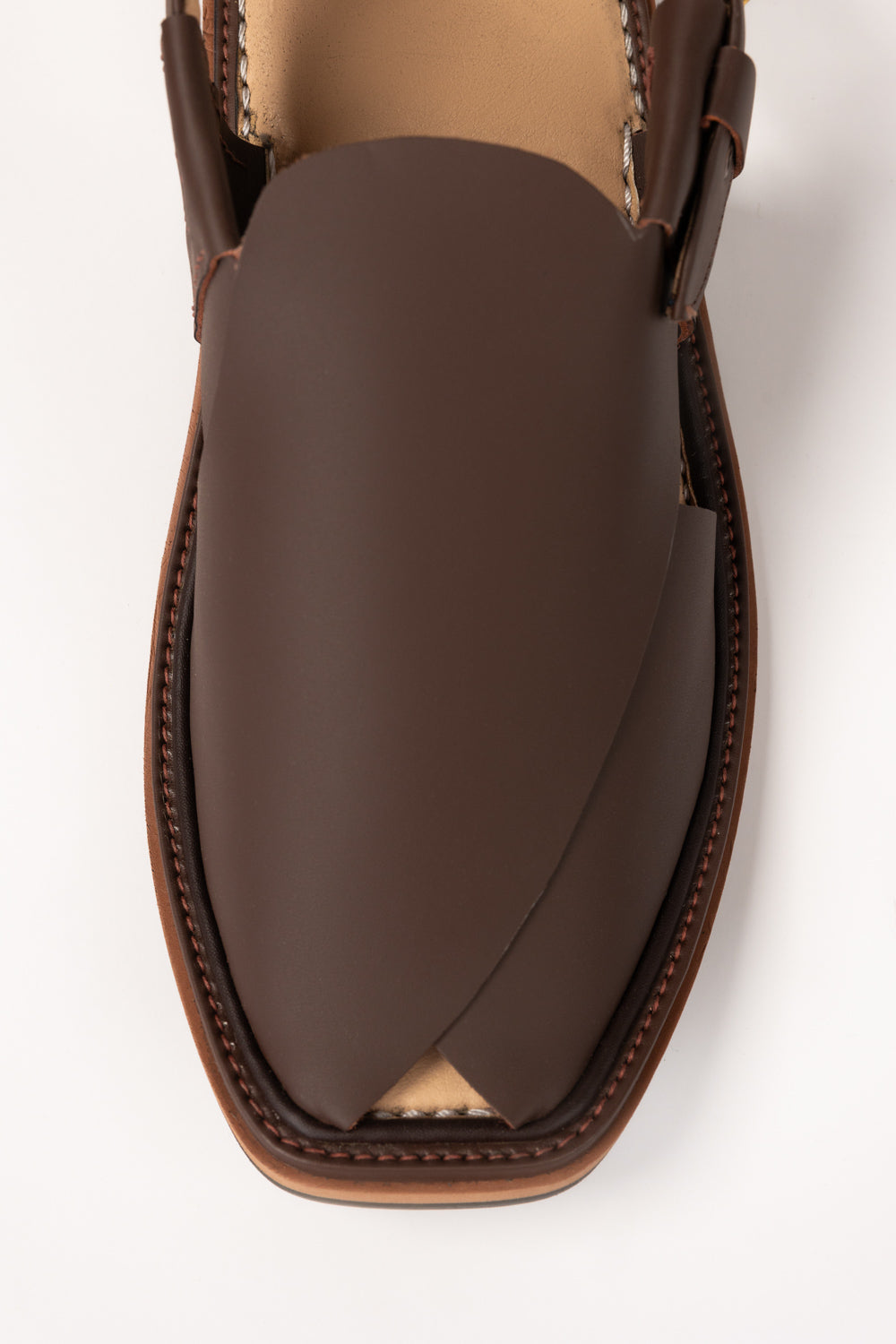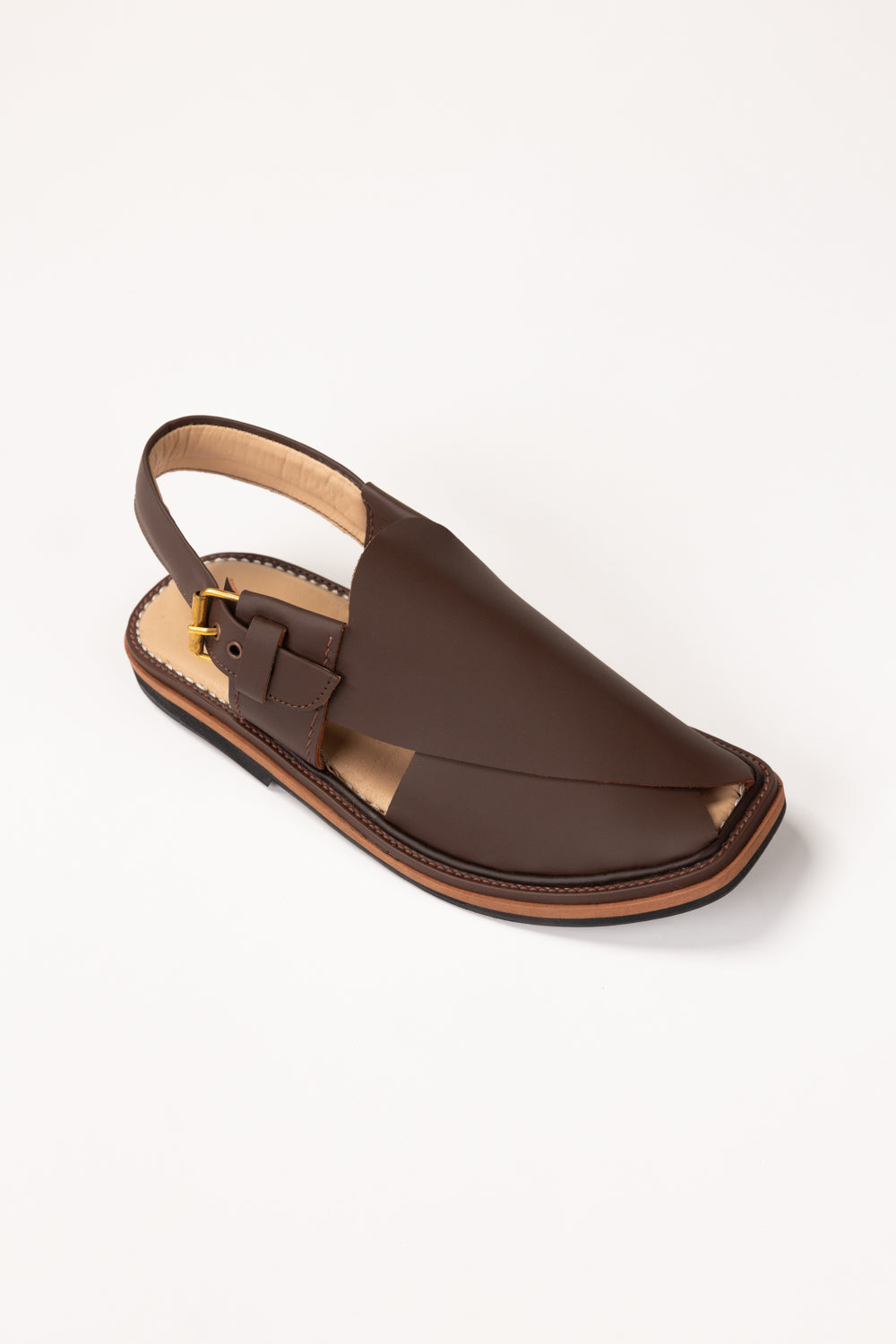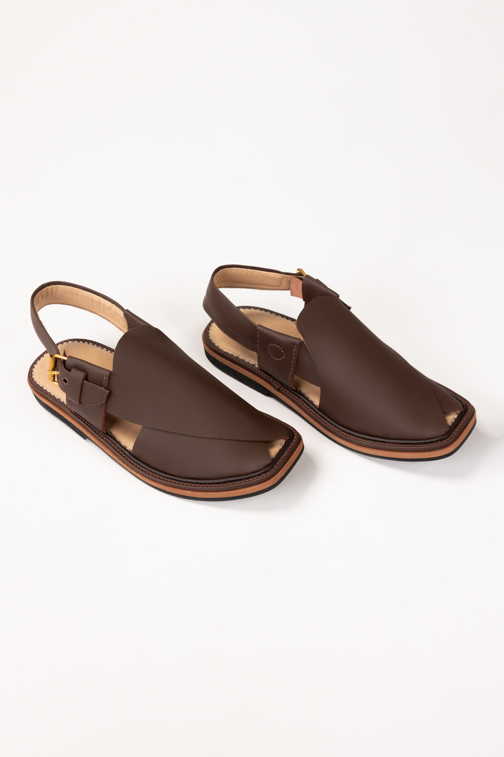 These Peshawari sandals feature a refined closed-toe upper with a layered cross-panel design that adds structure and a polished look. The closed-toe design with an adjustable ankle strap ensures a secure fit, while the cushioned insole supports all-day wear. Finished with a durable stitched sole, they’re ideal for both casual outings and cultural occasions.