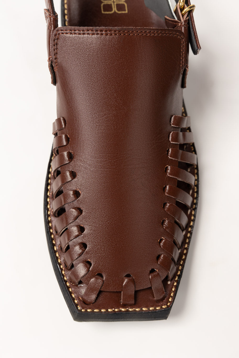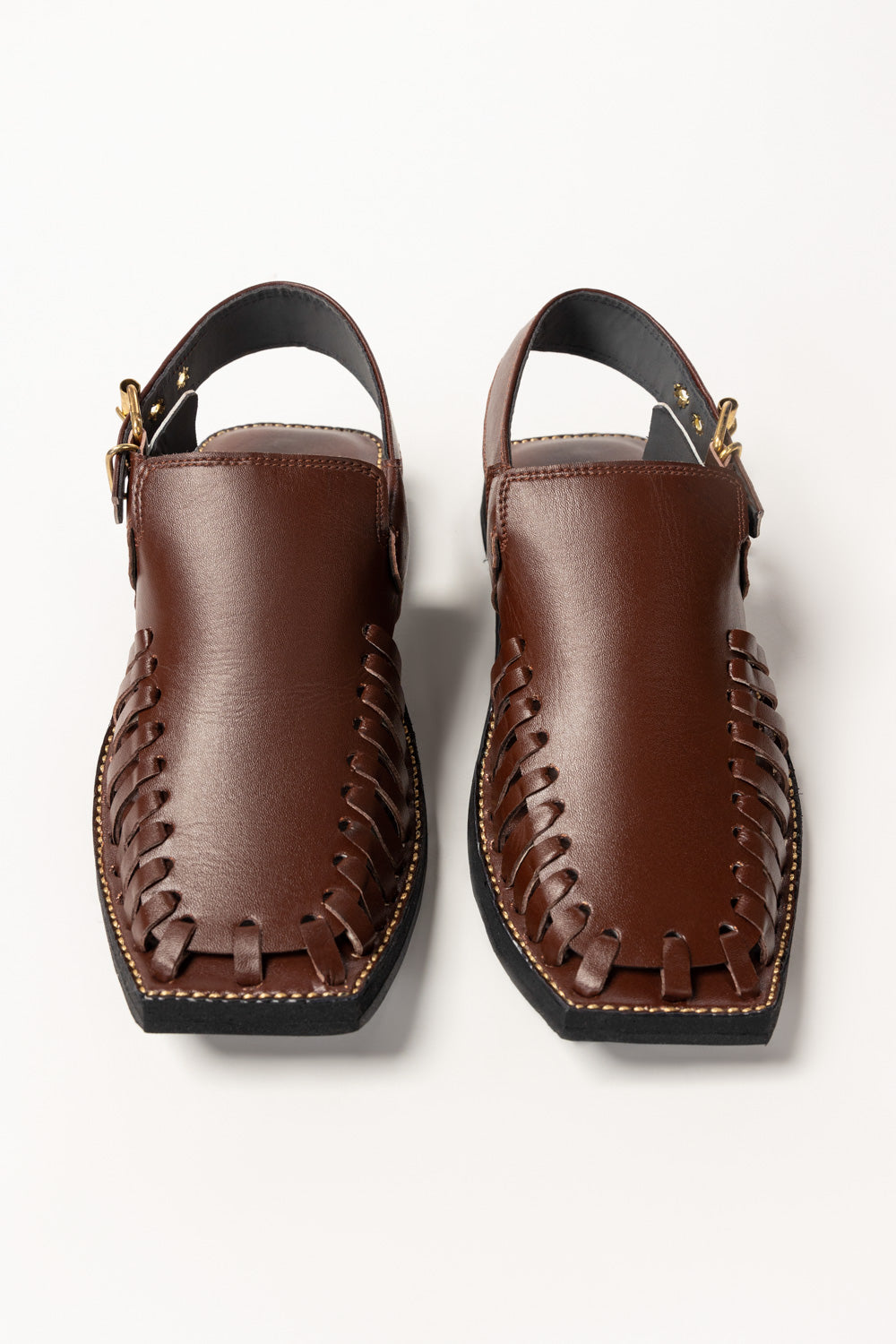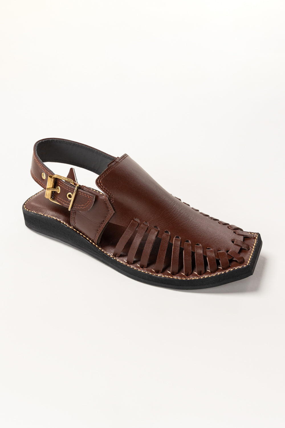 These rust leather Peshawari sandals blend traditional craftsmanship with modern durability. Designed with handwoven detailing and a square toe, they exude elegance and comfort. Finished with an adjustable buckle, perfect for formal and semi-formal wear.