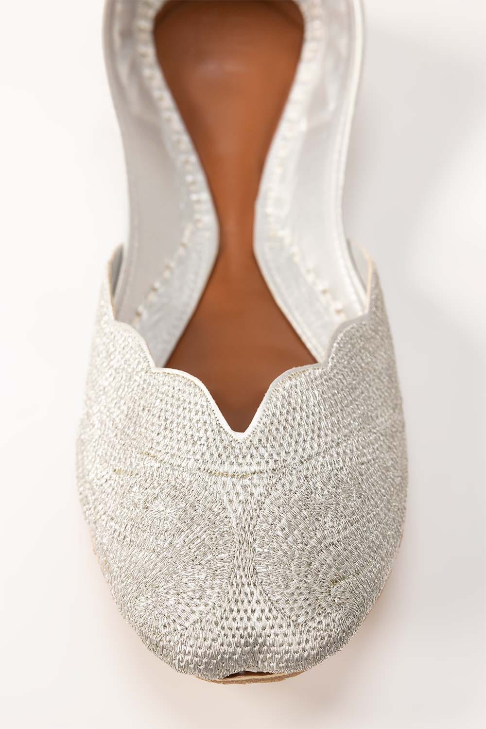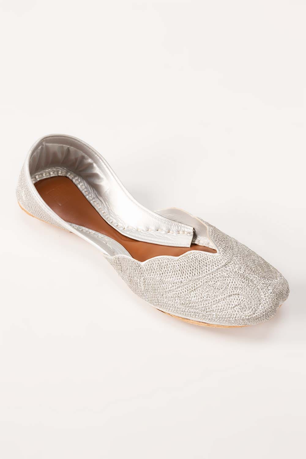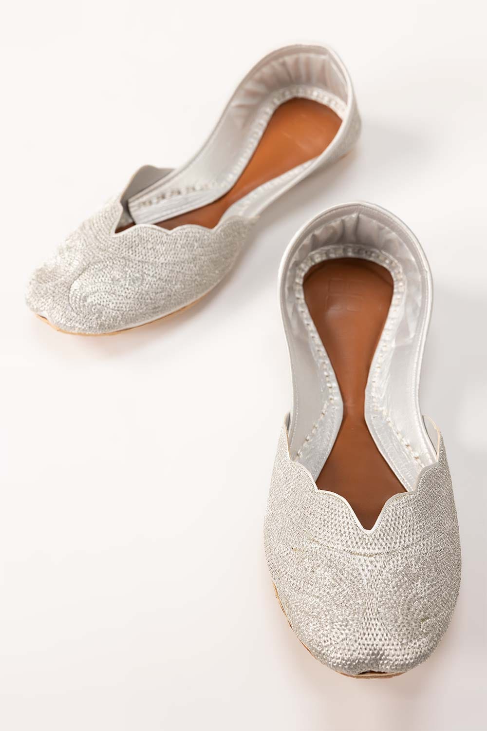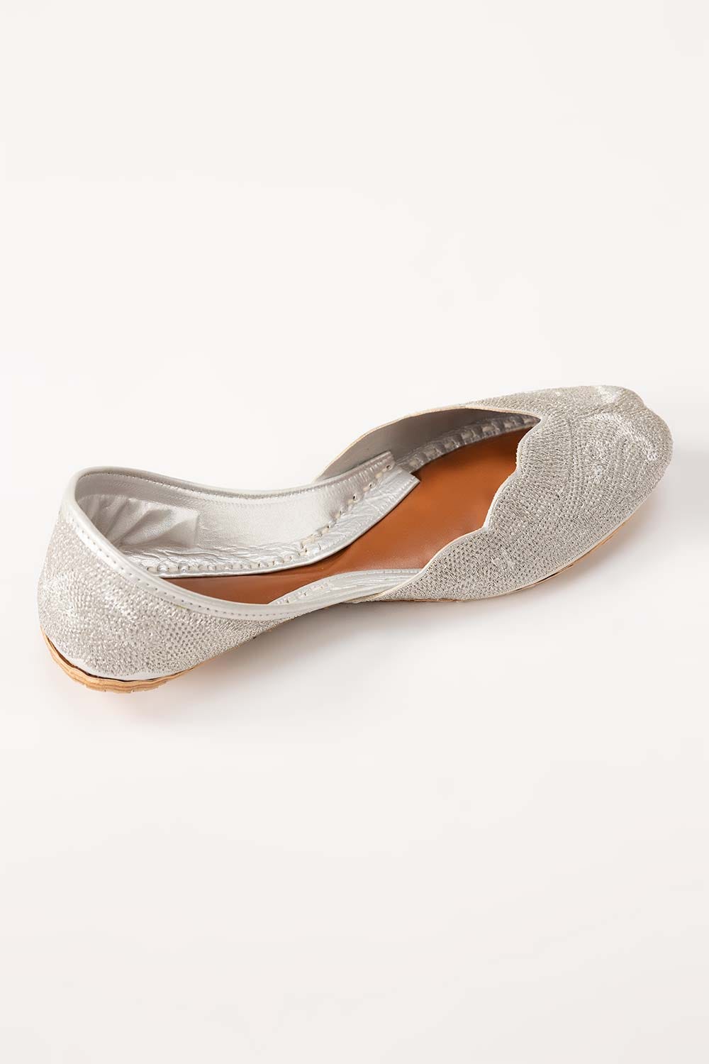 Beautifully embellished khussa that will elevate your eastern wardrobe. Featuring intricate Design, a gorgeous Silver hue and comfortable double padded cushioning, this pair will surely add an element of comfort and grace to any look.