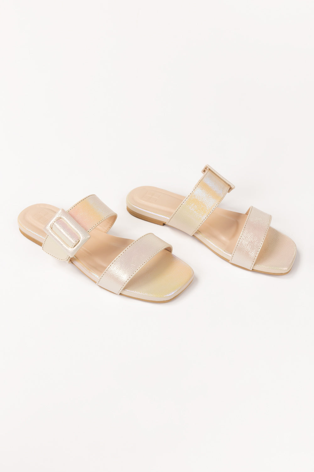 Elevate your everyday style with these chic iridescent slide sandals designed for effortless elegance. Featuring wide, glossy straps with a subtle shimmer, they add a modern glow to any outfit. Perfect for casual outings, vacations, or pairing with dressy looks for a polished finish.