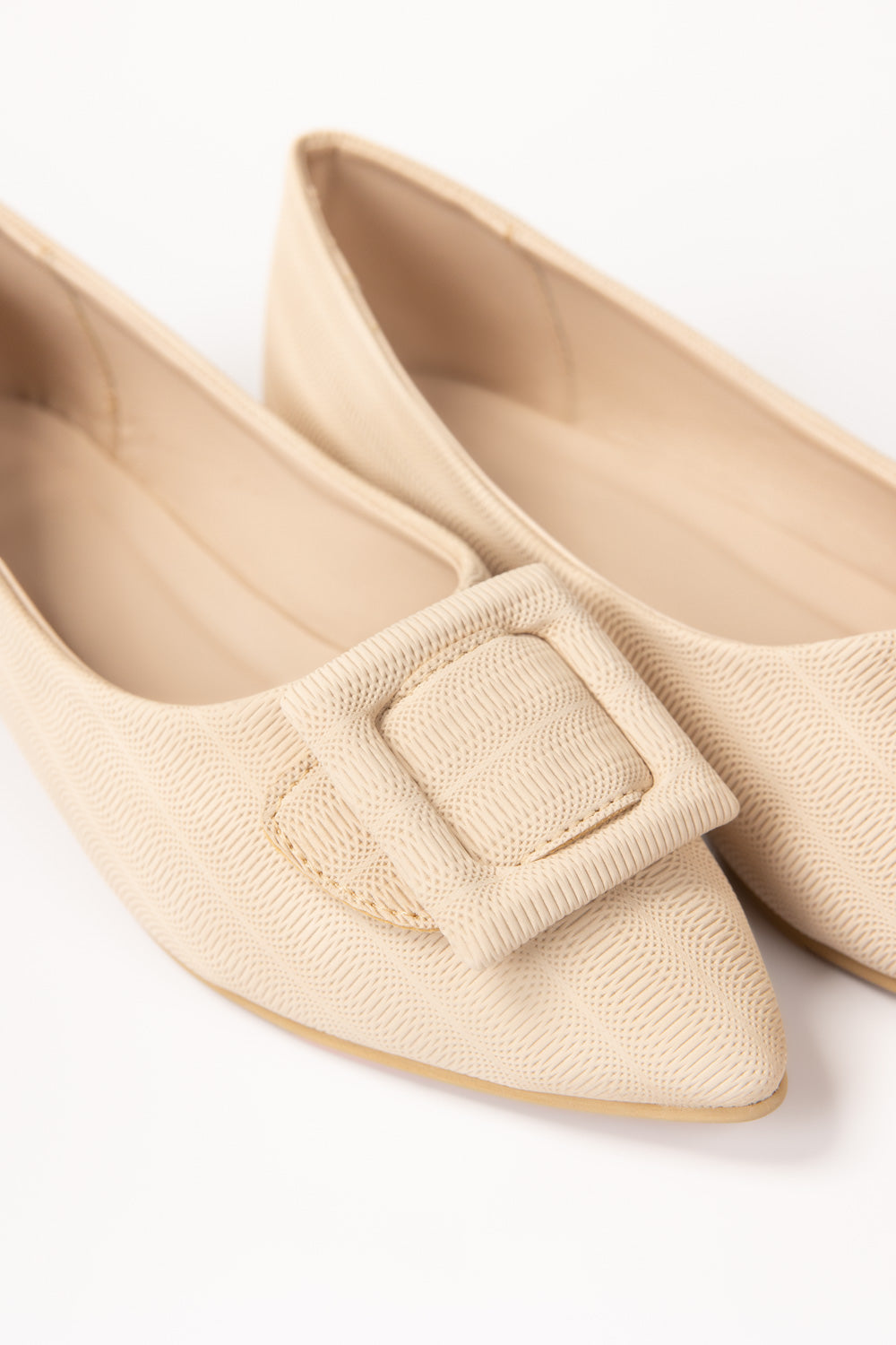 These maroon pointed-toe pumps feature a stylish square buckle on the vamp. They have a comfortable low block heel and a textured finish. Perfect for both casual and semi-formal occasions.