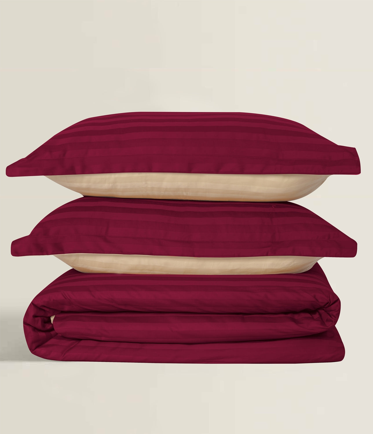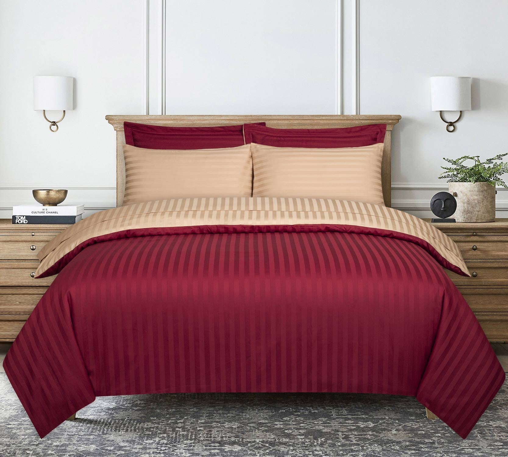 Jester Red and Biscotti Stripe Satin T-250 Quilt Cover Set