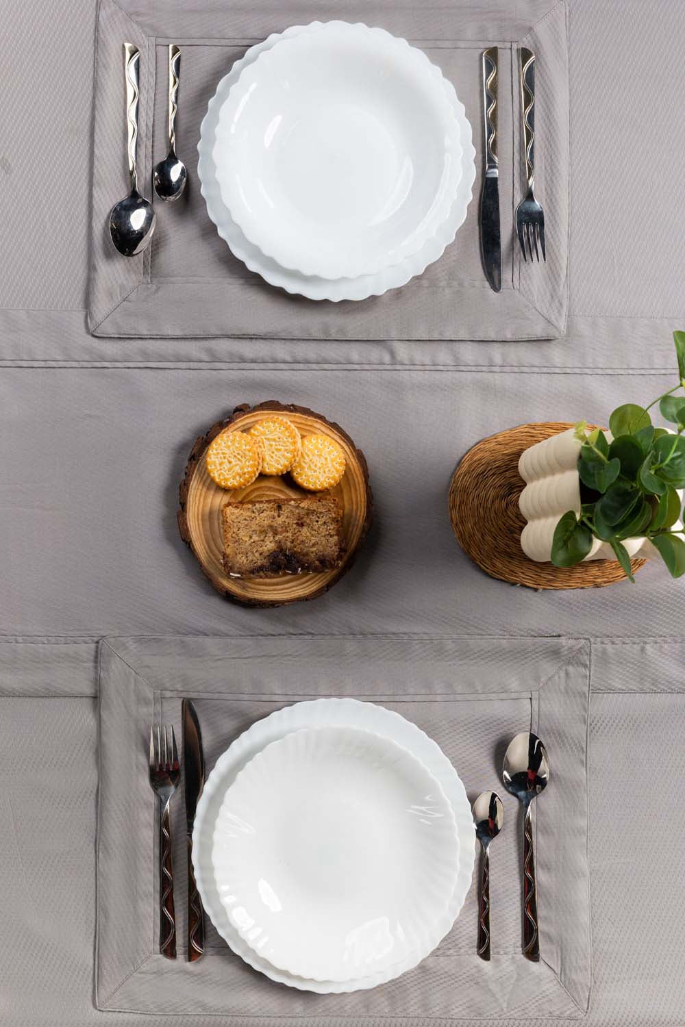 Add the perfect touch to your dining experience, with our new range of dobby tablecloths. These will compliment your style and add a tinge of grace and regality to your dining table as well.