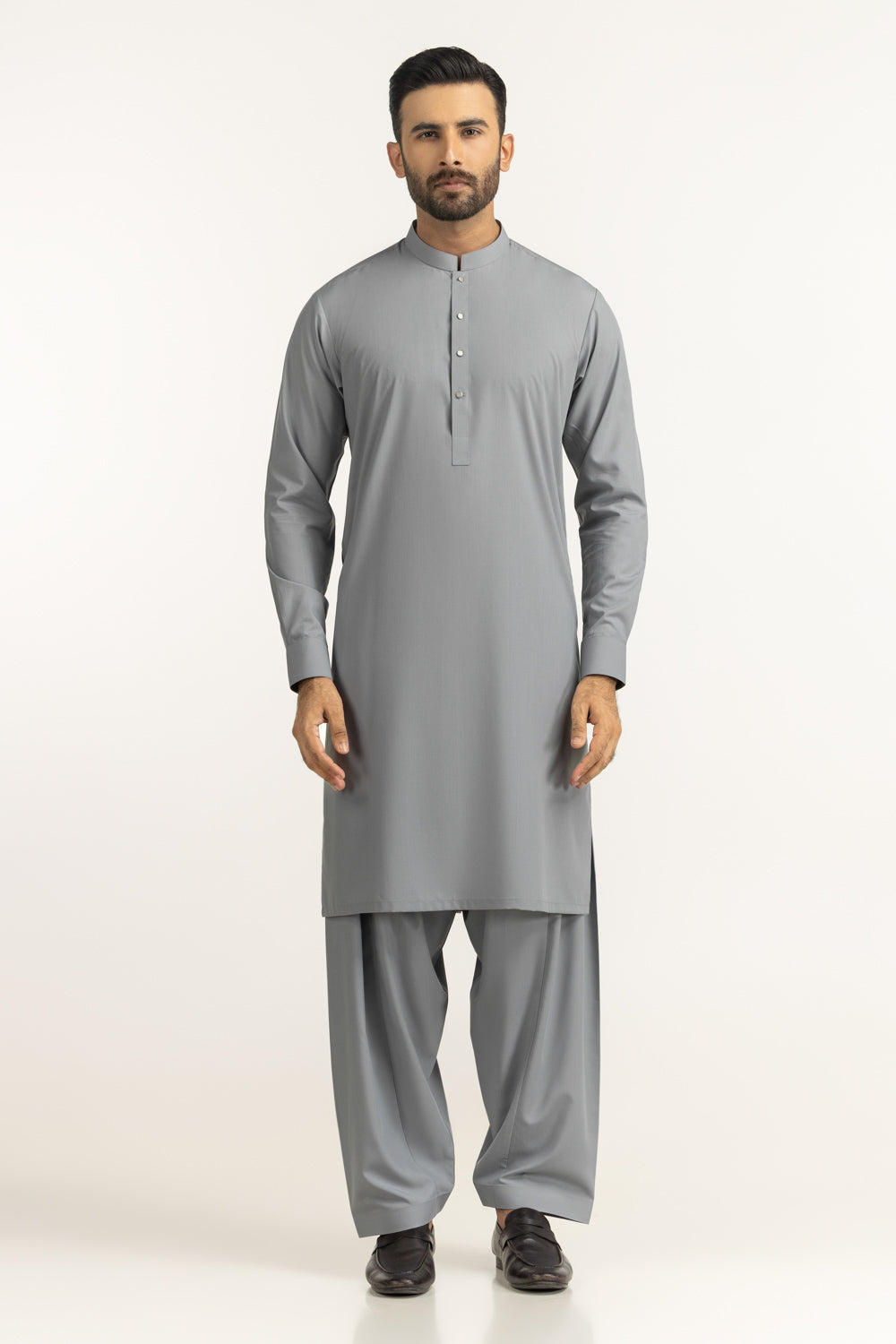 Made from smooth blended fabric, this regular fit suit offers structured tailoring with comfortable wearability throughout the day. The elegant grey color featured within the overall design tone enhances its formal versatility.