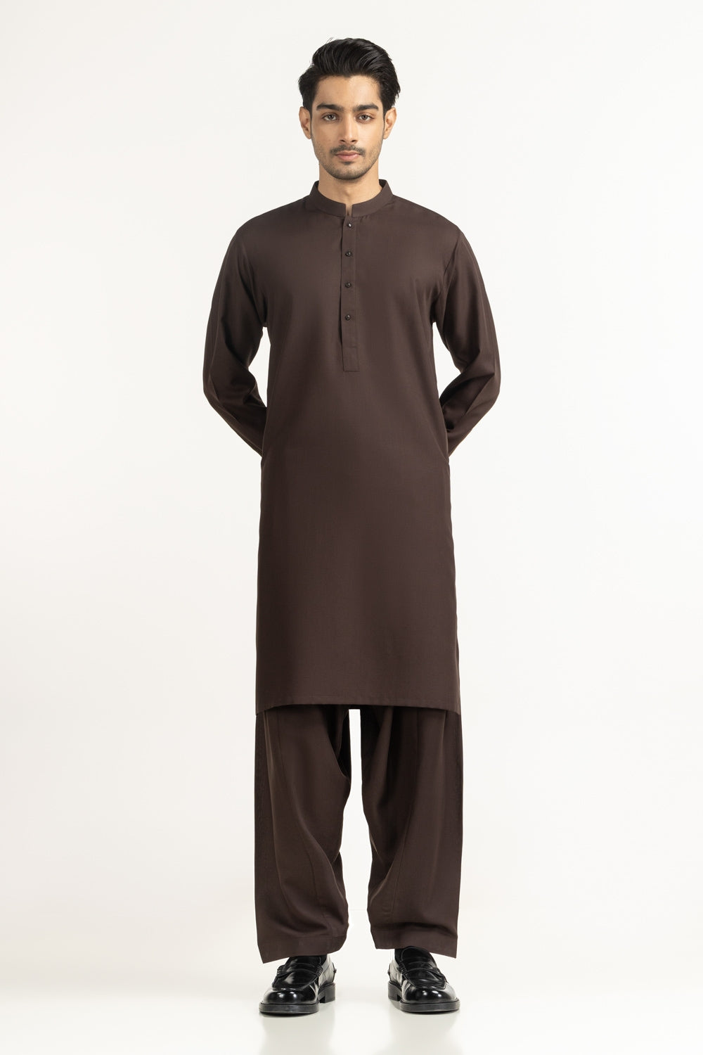 This basic-classic Kameez Shalwar seamlessly blends elegance with tradition, crafted with style and sophistication