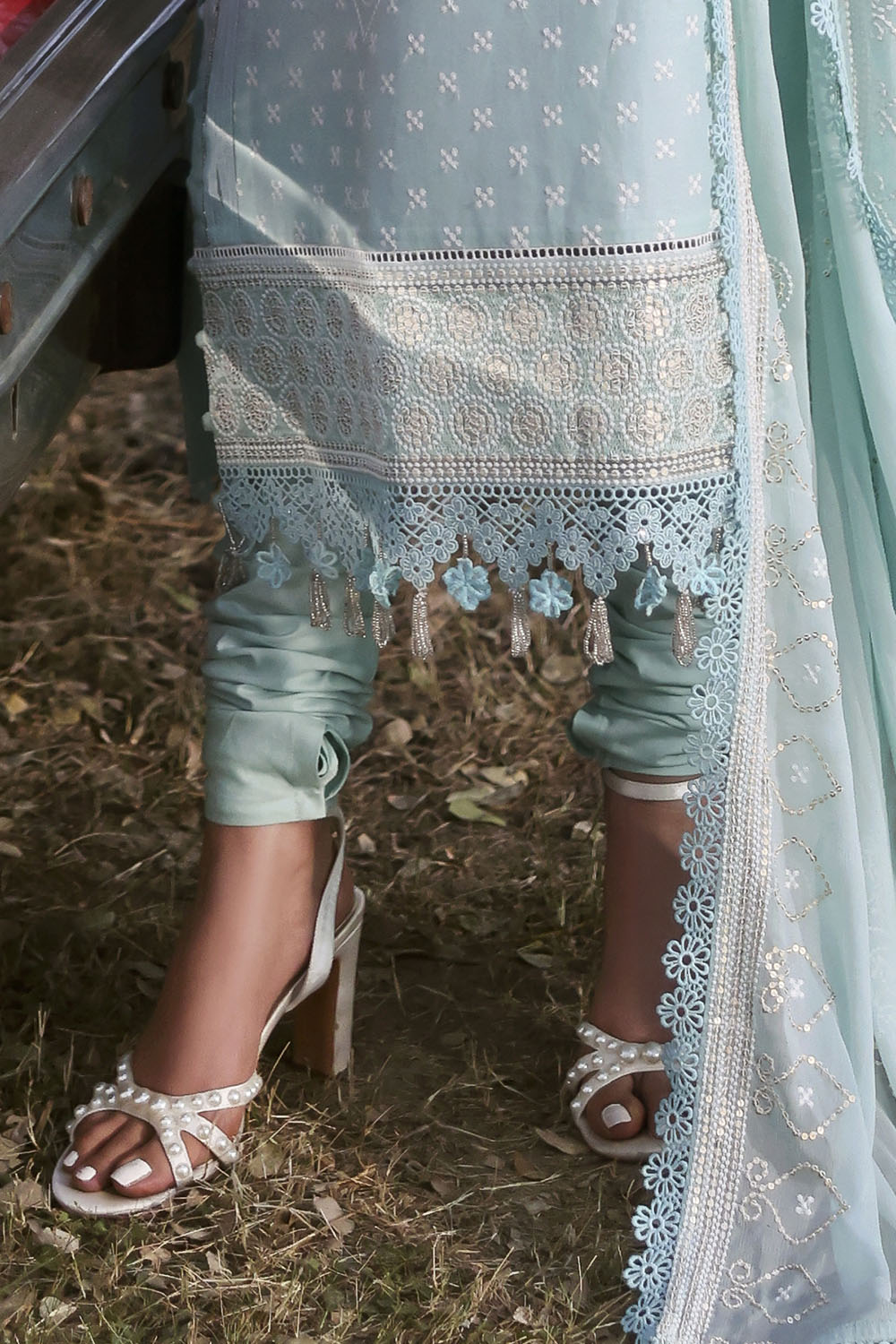 • Embroidered Lawn Shirt Front, Back & Sleeves with Embroidered Borders for Front & Back on Organza – 2.46 Meters