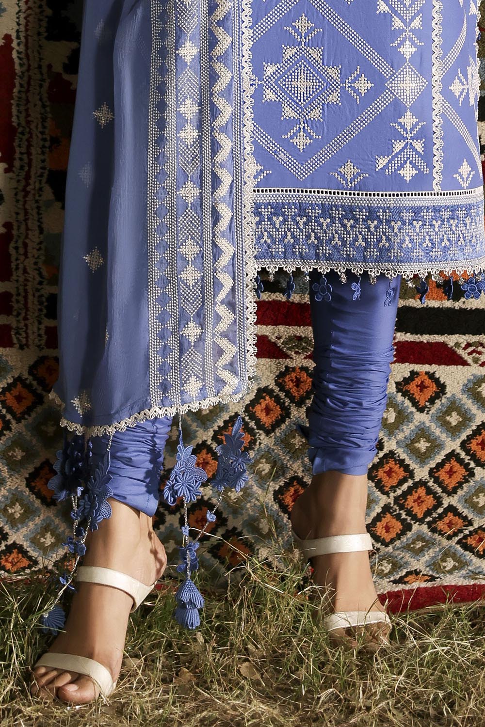• Embroidered Lawn Shirt Front Panel, Side Panels, Back & Sleeves. Embroidered Border for Front on Organza – 2.44 Meters