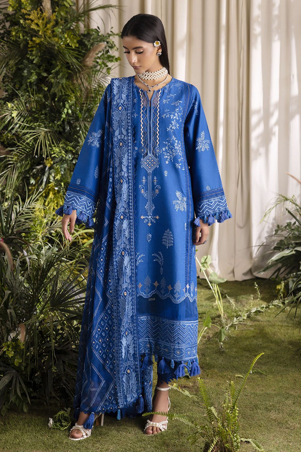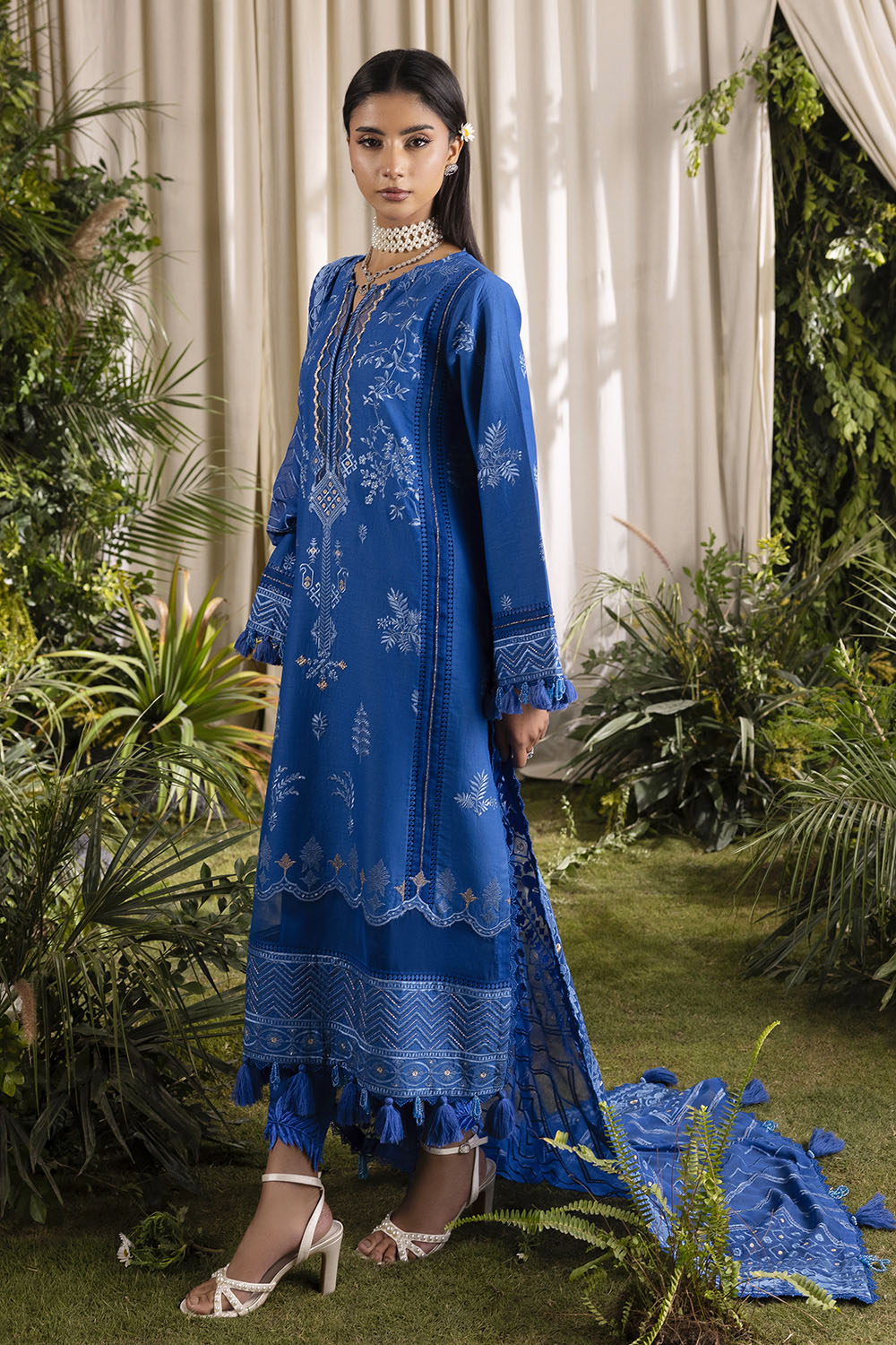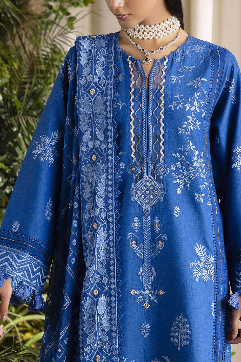 • Embroidered Lawn Shirt Front Panel, Side Panels, Back & Sleeves. Embroidered Borders for Front & Back – 2.53 Meters