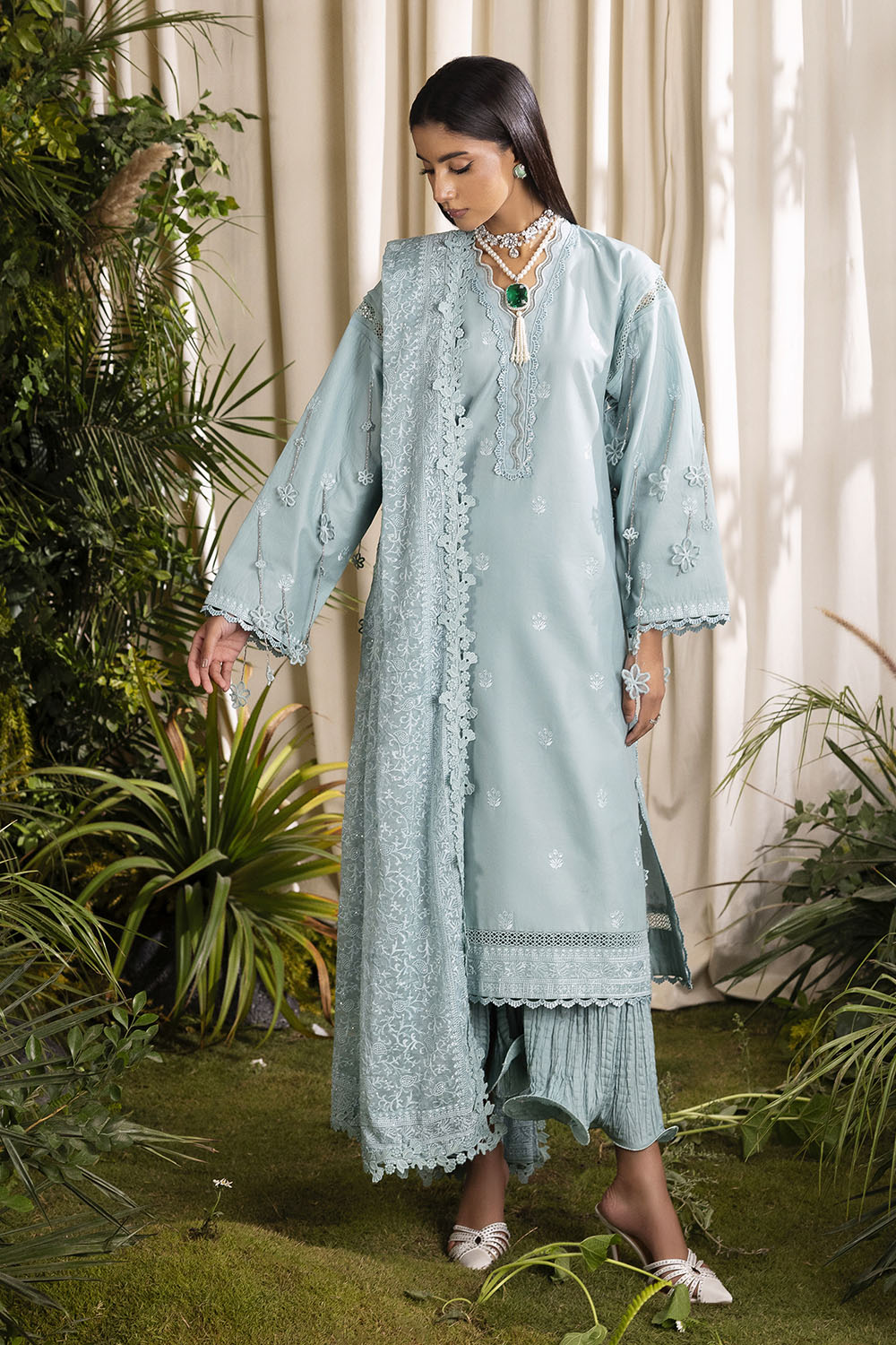 • Embroidered Lawn Shirt Front, Back & Sleeves with Embroidered Border for Front & Back – 2.35 Meters