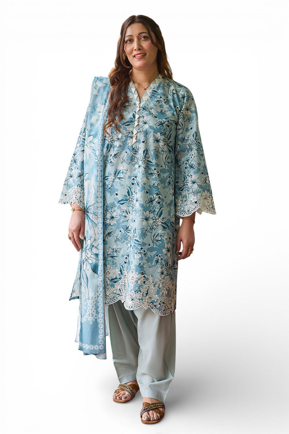 3 Piece Embroidered Printed Lawn Suit with Printed Denting Dupatta DN-62033