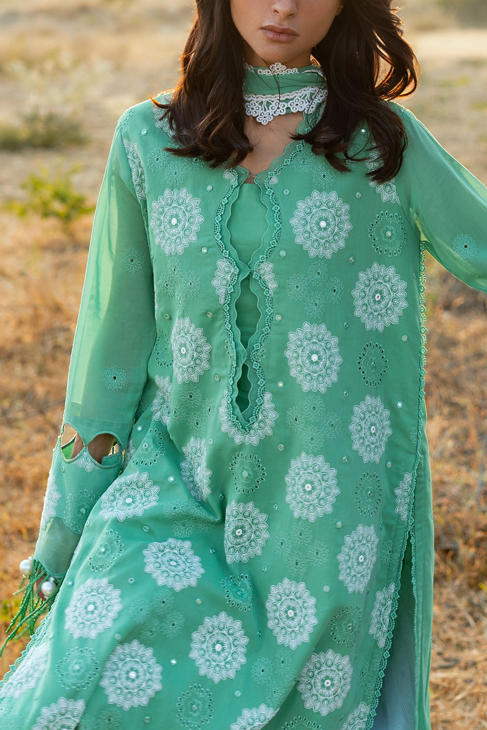 • Embroidered Swiss Voile Shirt Front, Back & Sleeves – 3.20 Meters