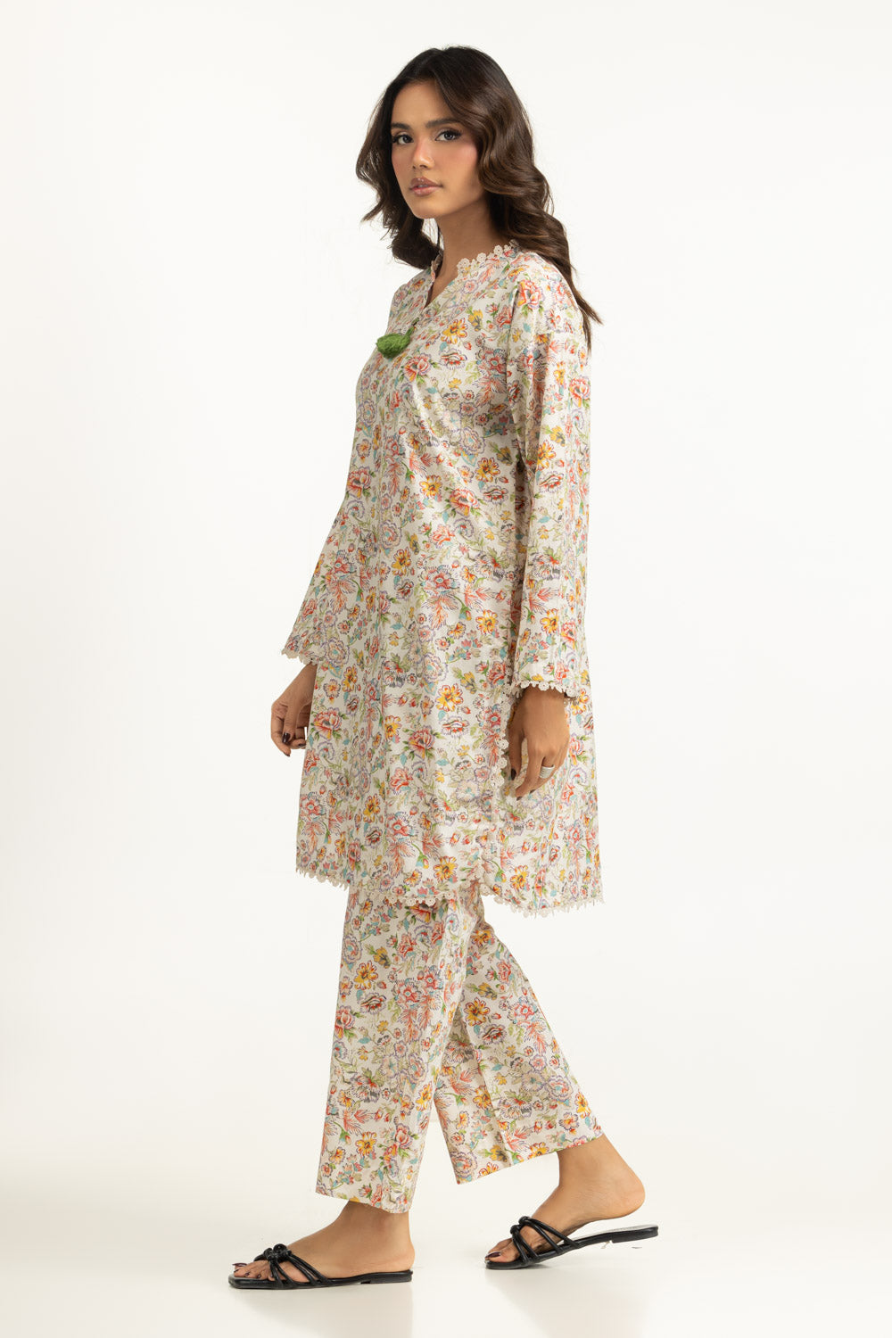 A minimal color palette combined with floral accents makes this co-ord set easy to style for all day wear. Tailored in a lightweight lawn, that supports breathability in summer heat. While the loose structure allows ease of movement for long hours.