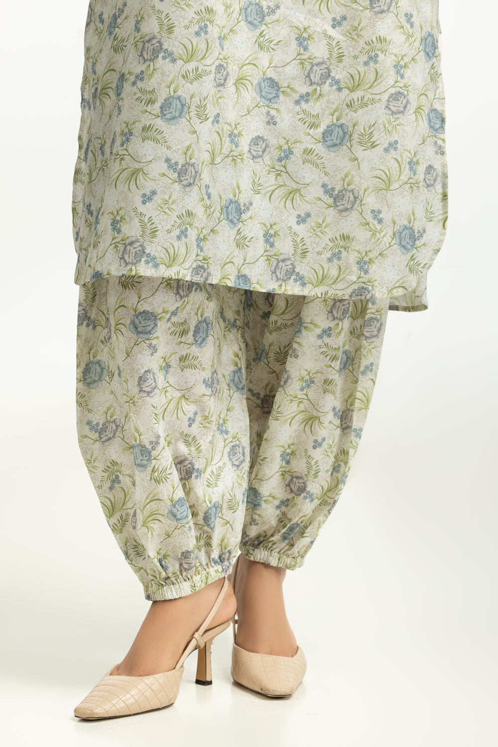 A misty ash palette paired with a subtle floral print, that creates a calm, breathable co-ord set perfect for warm summer days. The lightweight lawn allows breeze, keeping the outfit comfortable even during extended wear. The loose-fit silhouette supports easy movement, making it ideal for casual gatherings.