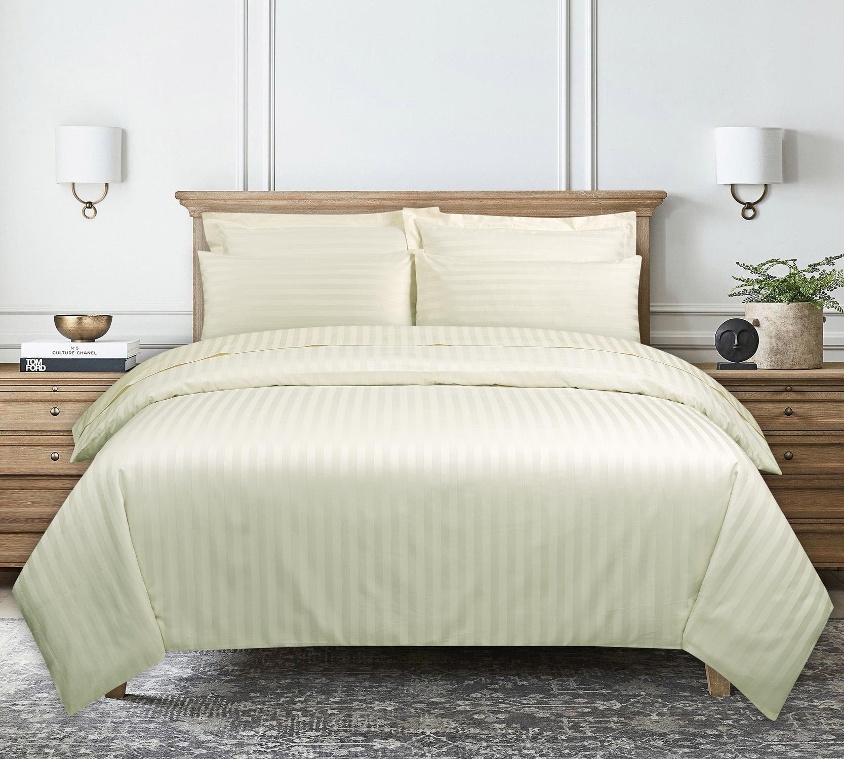 Cream Stripe Satin T-250 Quilt Cover Set 24