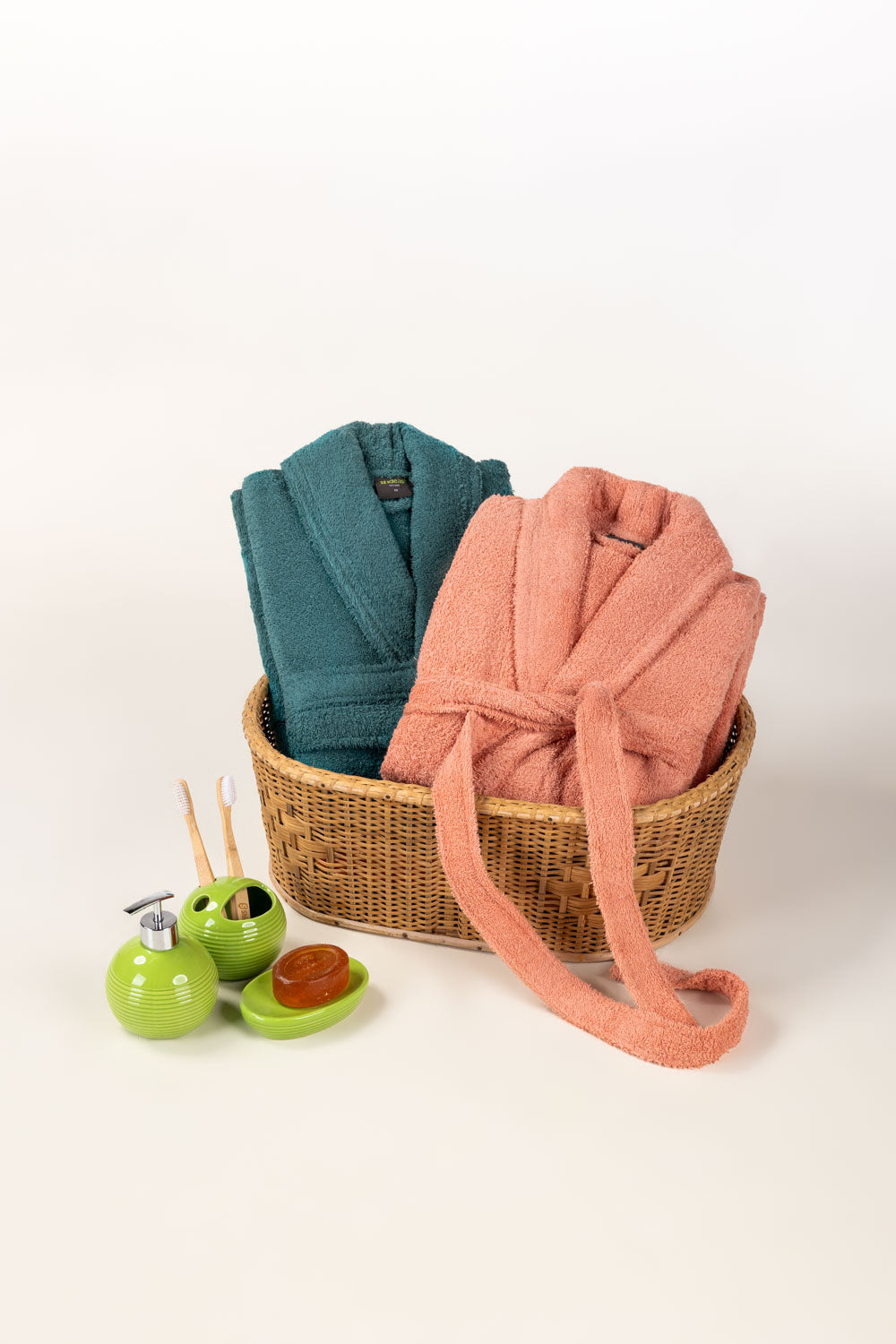 Made from long staple combed cotton, this robe is soft, comfortable and highly absorbent. Front patch pockets and full shawl collar add convenience and styling to this bathrobe. Available in a range of fashionable colors, this bathrobe is suitable for both men and women.