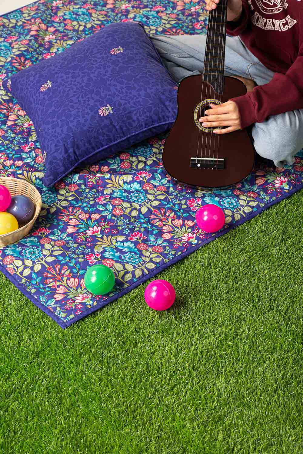 Available in exquisite designs, our quilted mat provides safe cushioning for light exercise, camping, yoga and can also be used as a play mat or the way you like. Fold it down to carry it easily with handles.