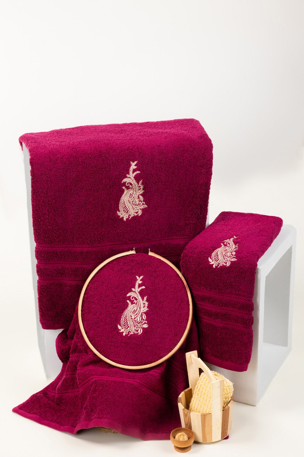 Raspberry Combed Embroidered towel
