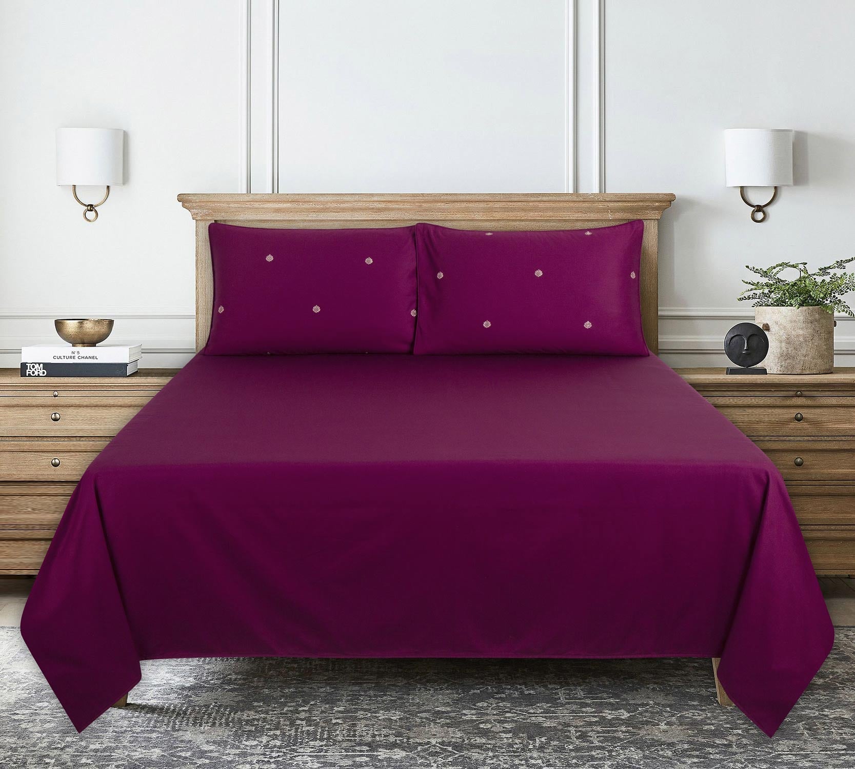 Vivid ViolaT-400 Embroidered Bed Sheet Set