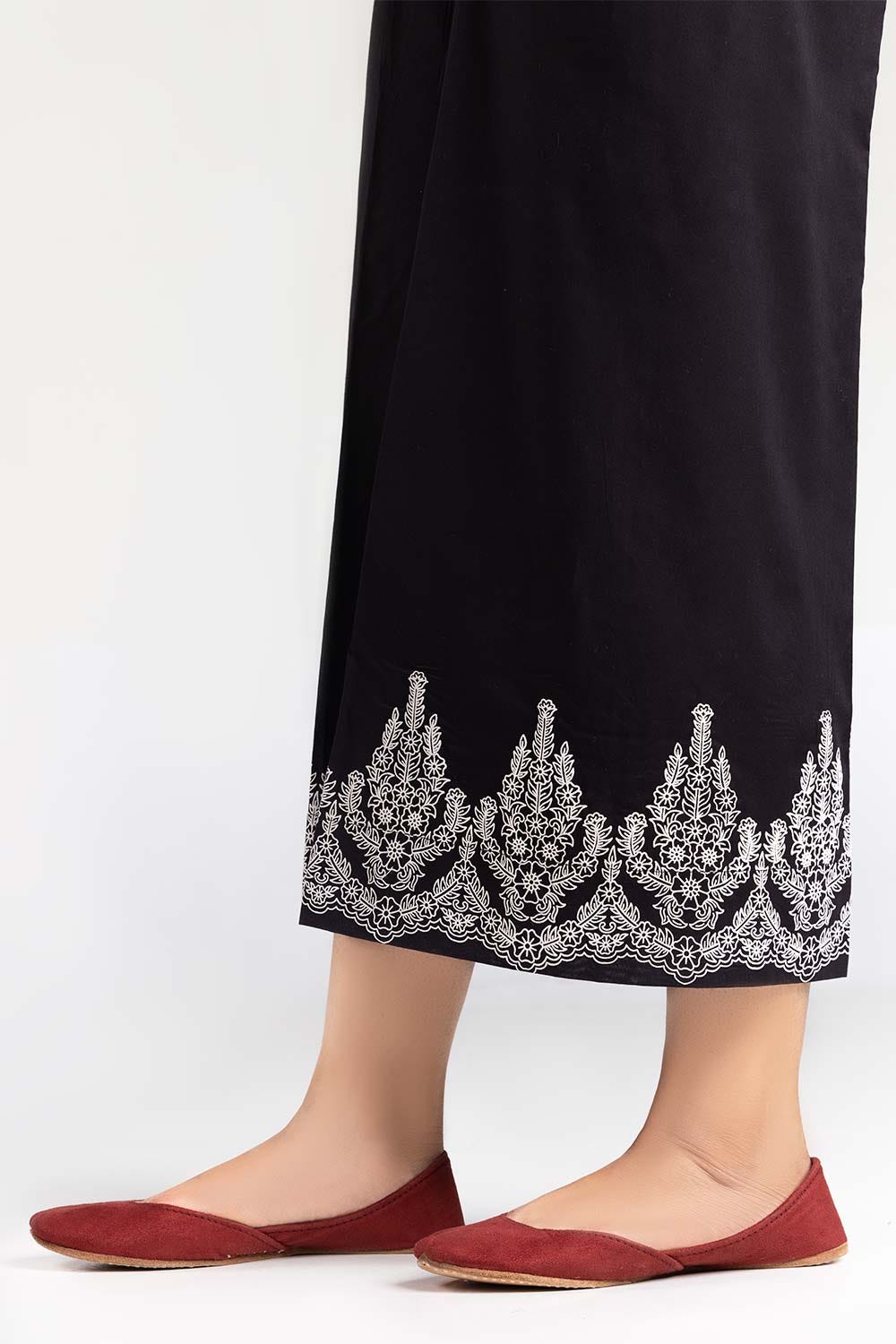 Black Screen Printed Raw Silk Trousers TR-22-123