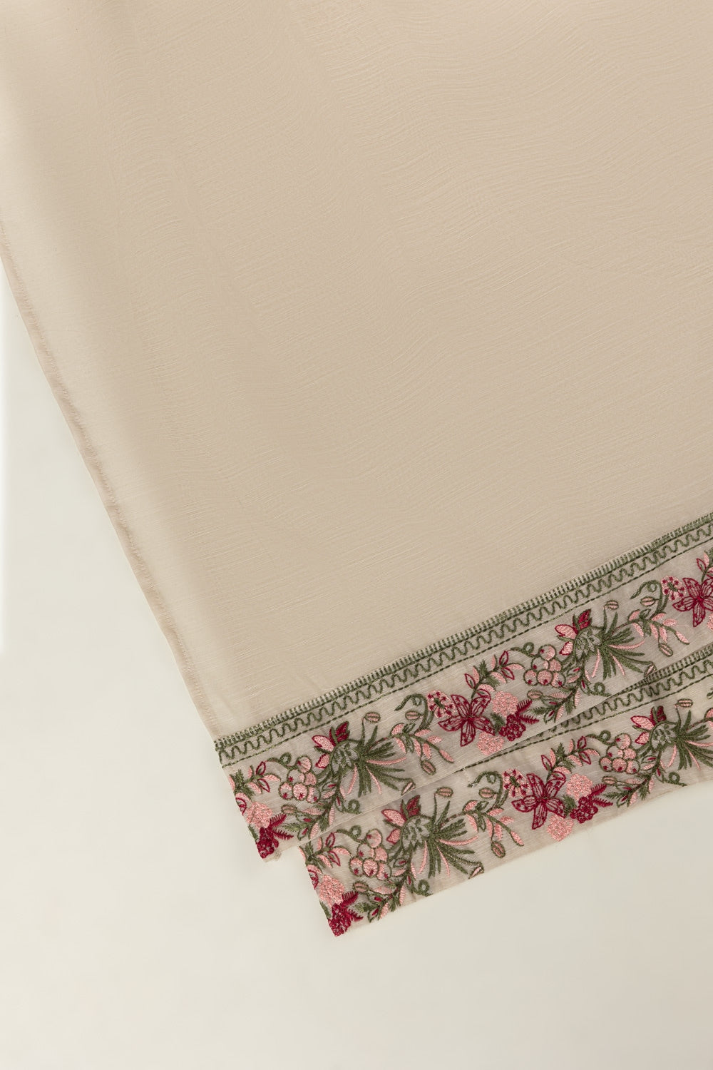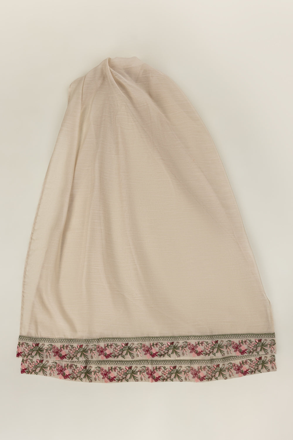 Classic, pretty, and made to pair effortlessly. This beige dupatta brings a dreamy balance of traditional craftmanship and trendy aesthetics with its floral-embroidered edges. Perfect for summer celebrations or small gatherings