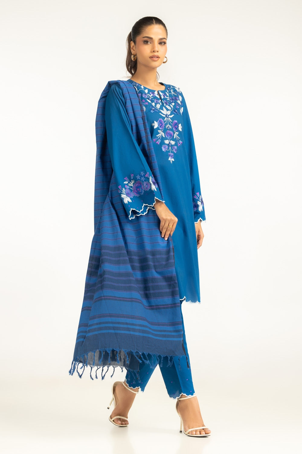 Complete your summer outfit with this textured dupatta, featuring a vibrant color to effortlessly pair with the matching co-ord set. It offers a feminine and contemporary touch, while its breezy design keeps you comfortable throughout the day.